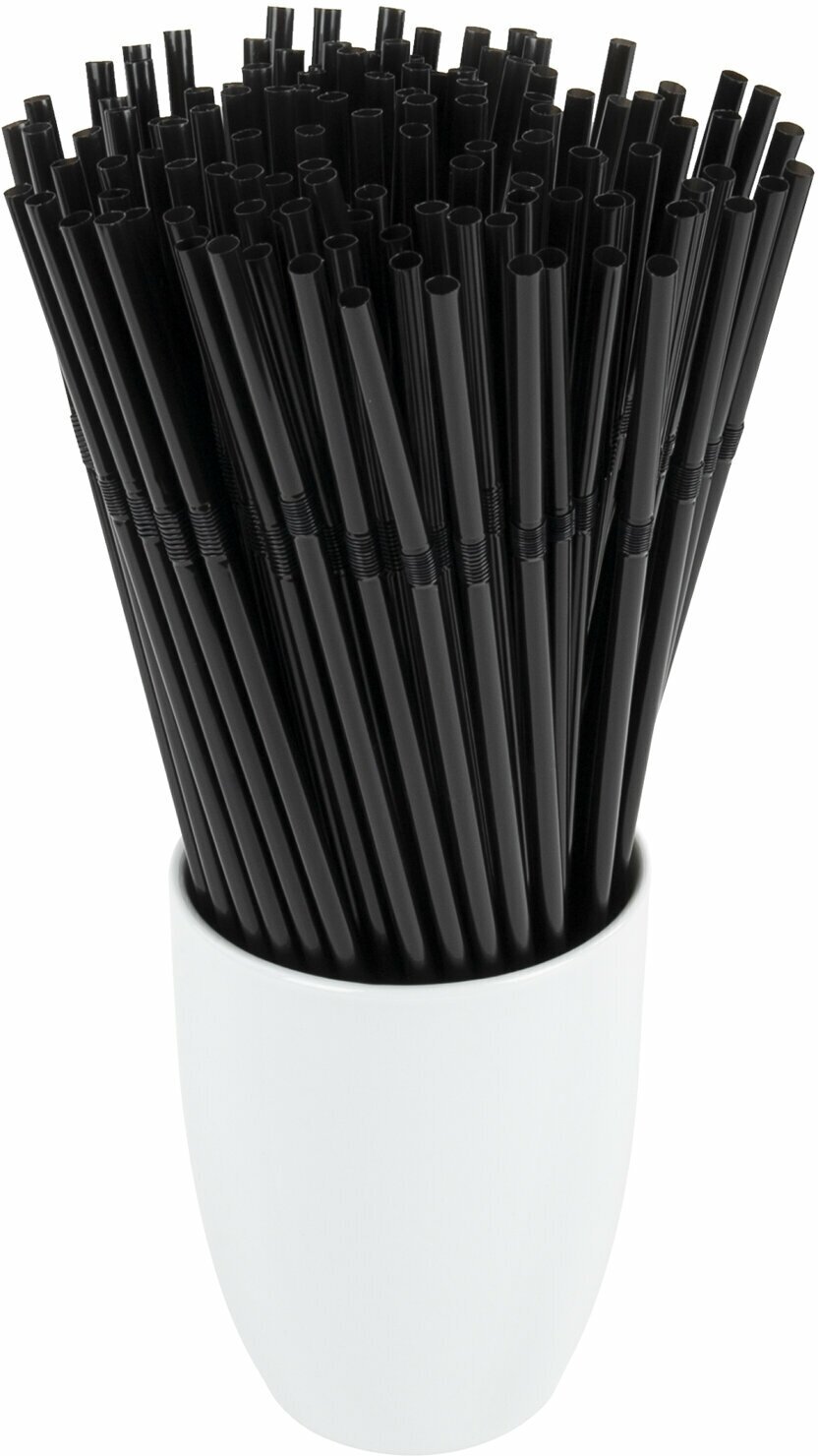 Купить Одноразовые трубочки для напитков / коктейлей гофрированные, пластиковые 5 х 240 мм, черные Комплект 250 штук, Laima, 608359