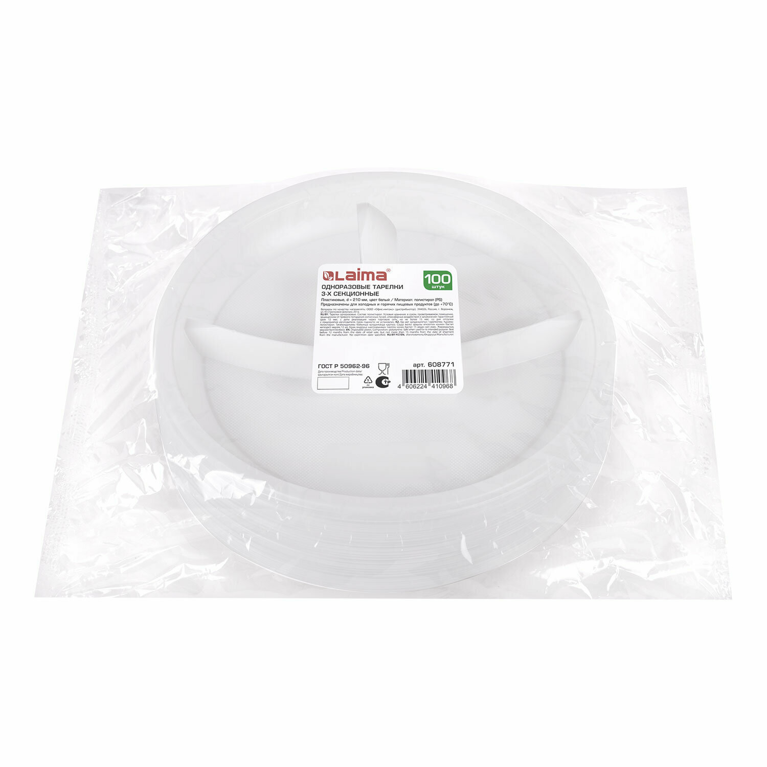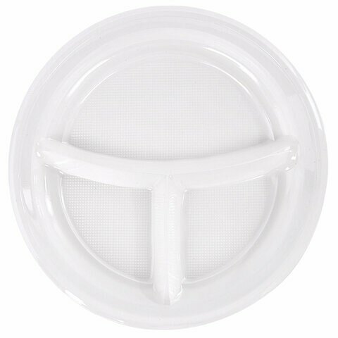 Купить Одноразовые тарелки LAIMA 3-х секционные, 100 штук, 220 мм, белые, ПП, холодное, горячее, стандарт