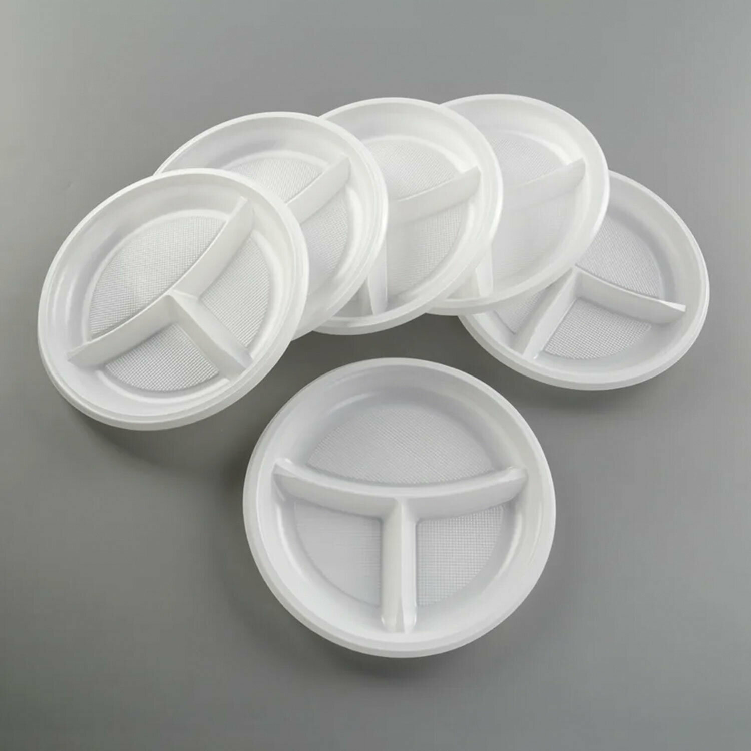 Одноразовые тарелки 3-х секционные комплект 100 шт. 220 мм, белые, ПП, холодное/горячее, LAIMA стандарт, 608769