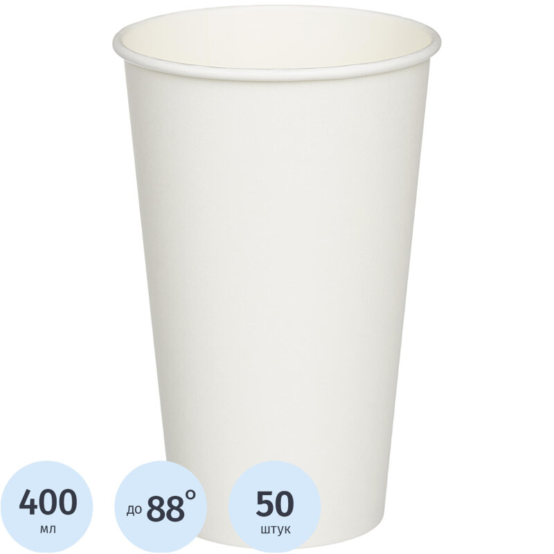 Стакан одноразовый TasteQuality бумажный белый 400 мл 50 штук в упаковке, 499895