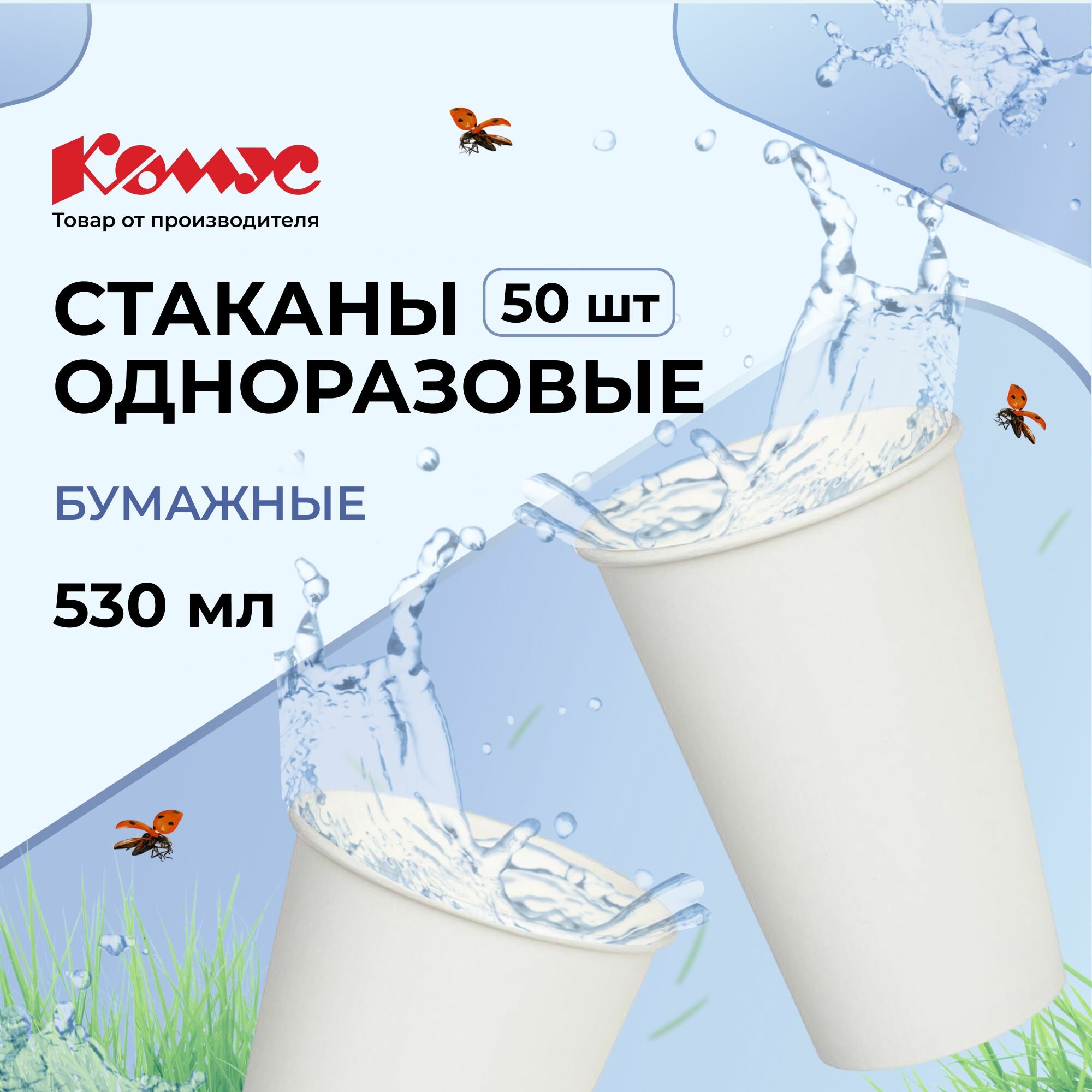 Купить Стаканы одноразовые бумажные Комус, 400 мл, 50 штук, белые