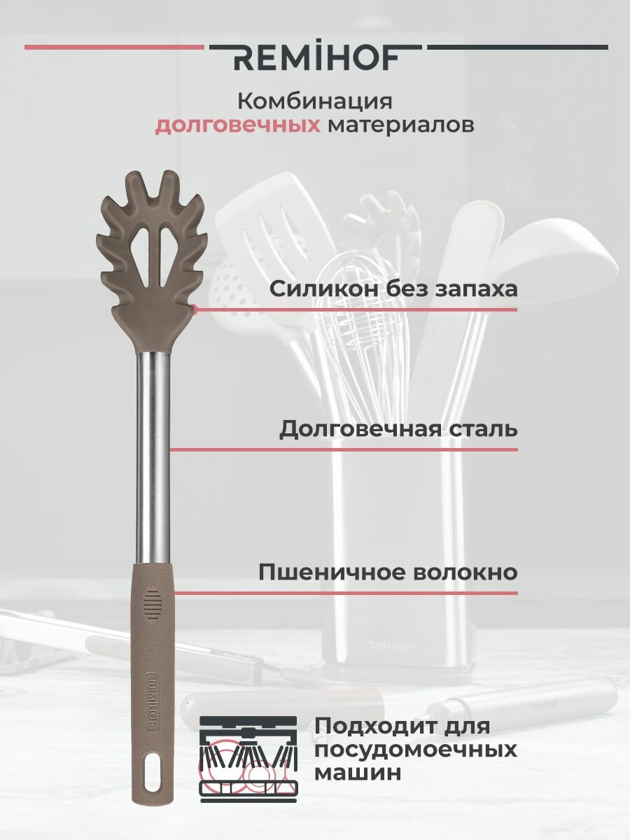 | Состав набора | венчик / ложка для спагетти / ложка поварская / лопатка / половник / шумовка / щипцы |