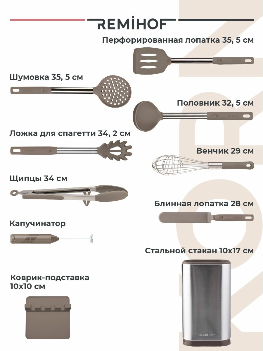 Набор кухонных принадлежностей Remihof Korn RmH-CORNY-9-Beige, бежевый, 9 предметов+ капучинатор в