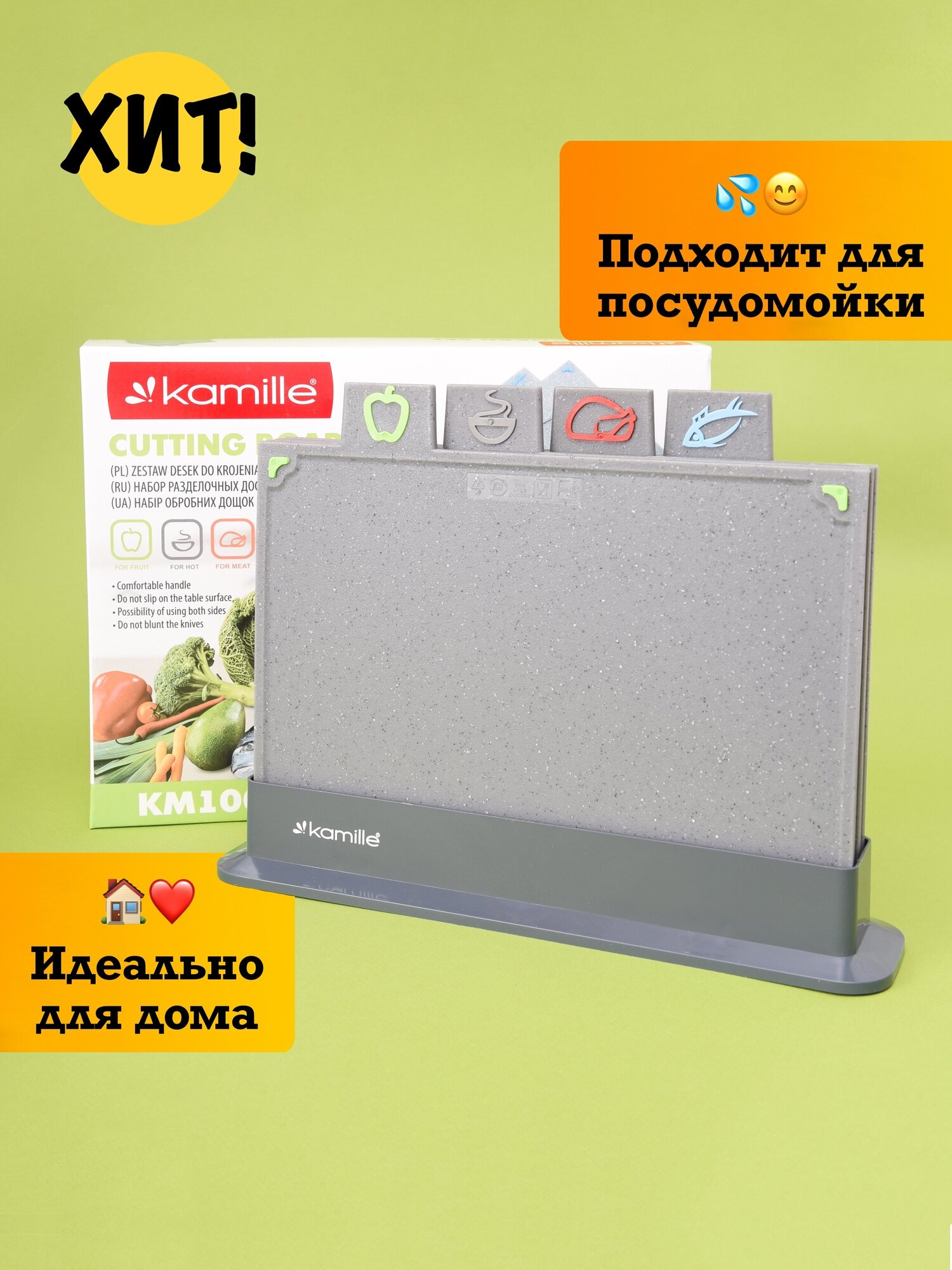 | Особенности | двухсторонняя / маркировка типа продуктов / мытье в посудомоечной машине / нескользящая |