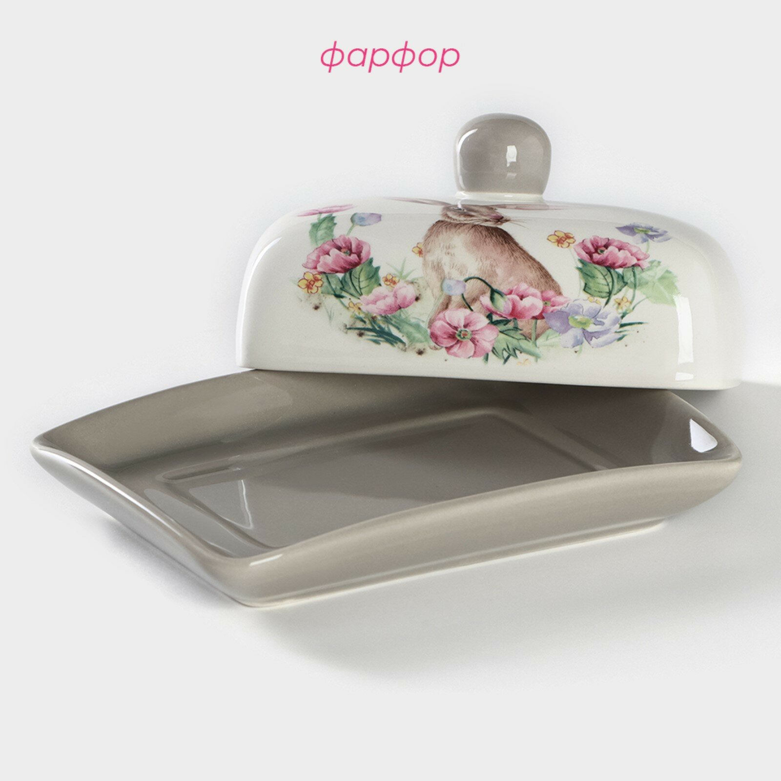 Масленка для сливочного масла Доляна «Зайка», с крышкой, 17×12×8,5 см, цвет белый интересное: