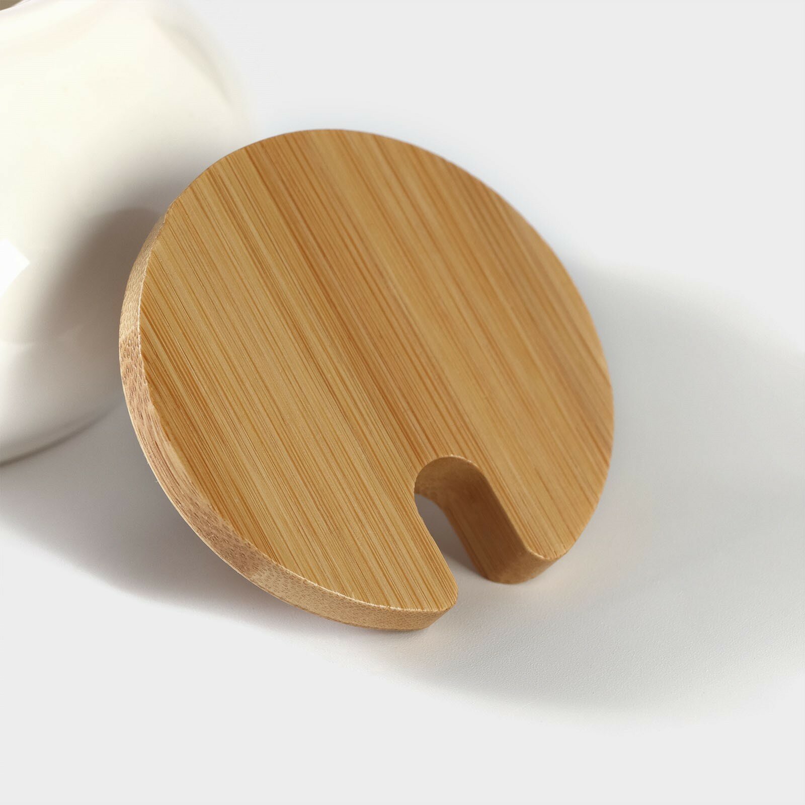 Сахарница фарфоровая с ложкой на деревянной подставке BellaTenero, 200 мл, цвет белый