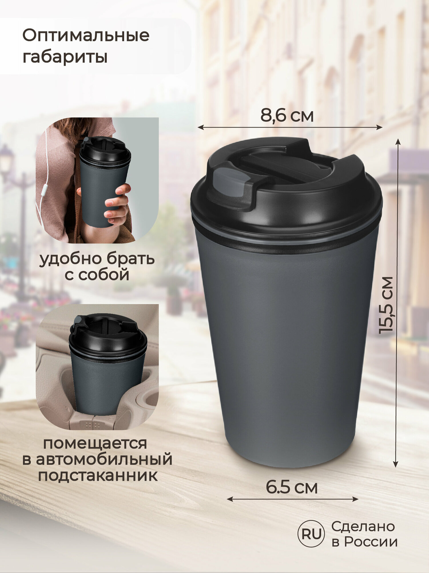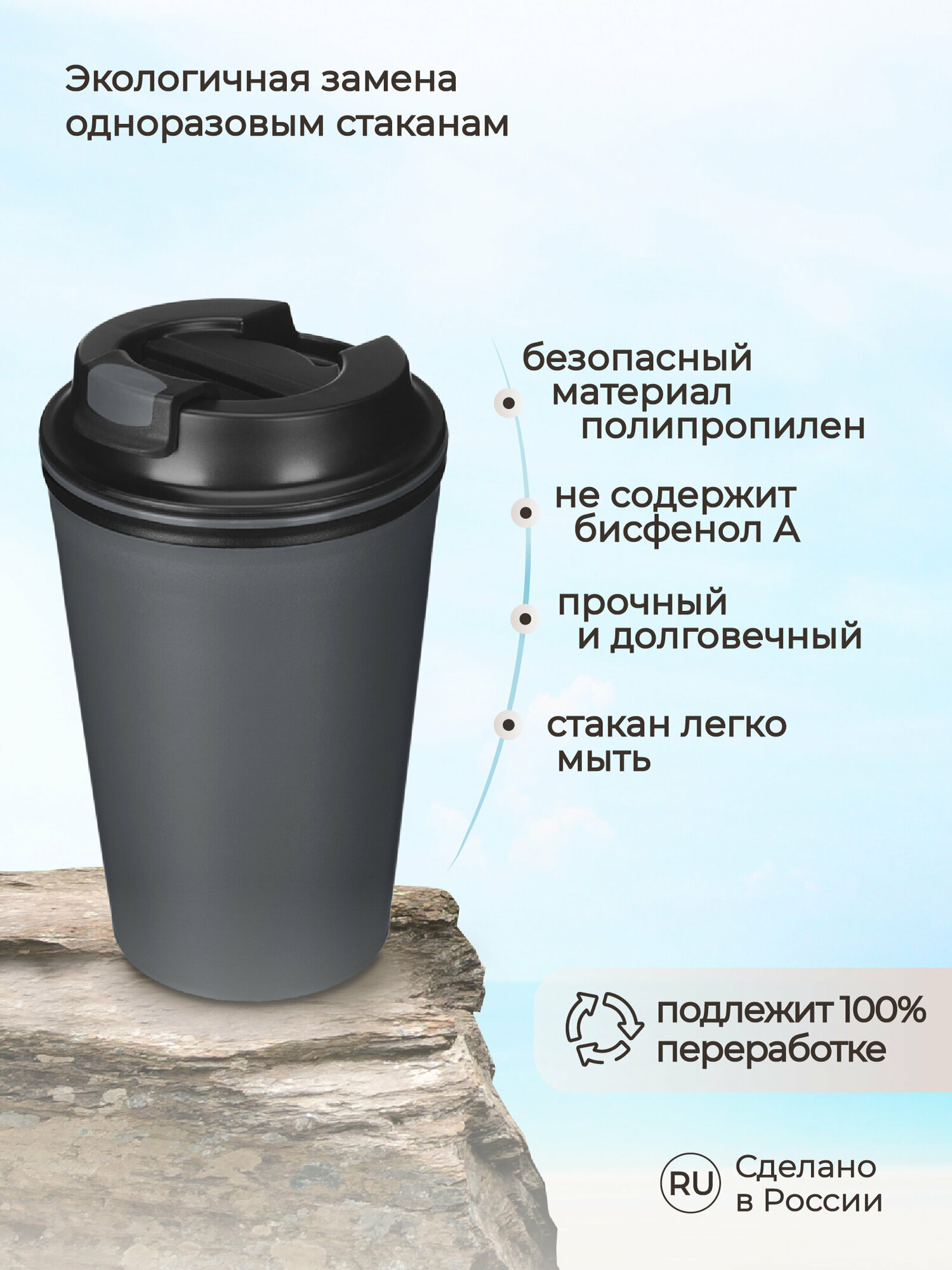 Термостакан для напитков, кофе, чая 350 мл пластиковый с крышкой и клапаном, многоразовый, термокружка