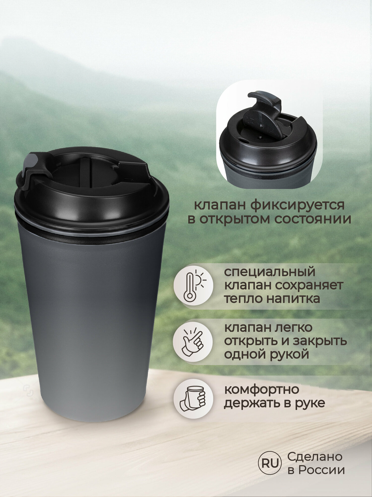 Купить Термостакан С клапаном 350МЛ (Серый)