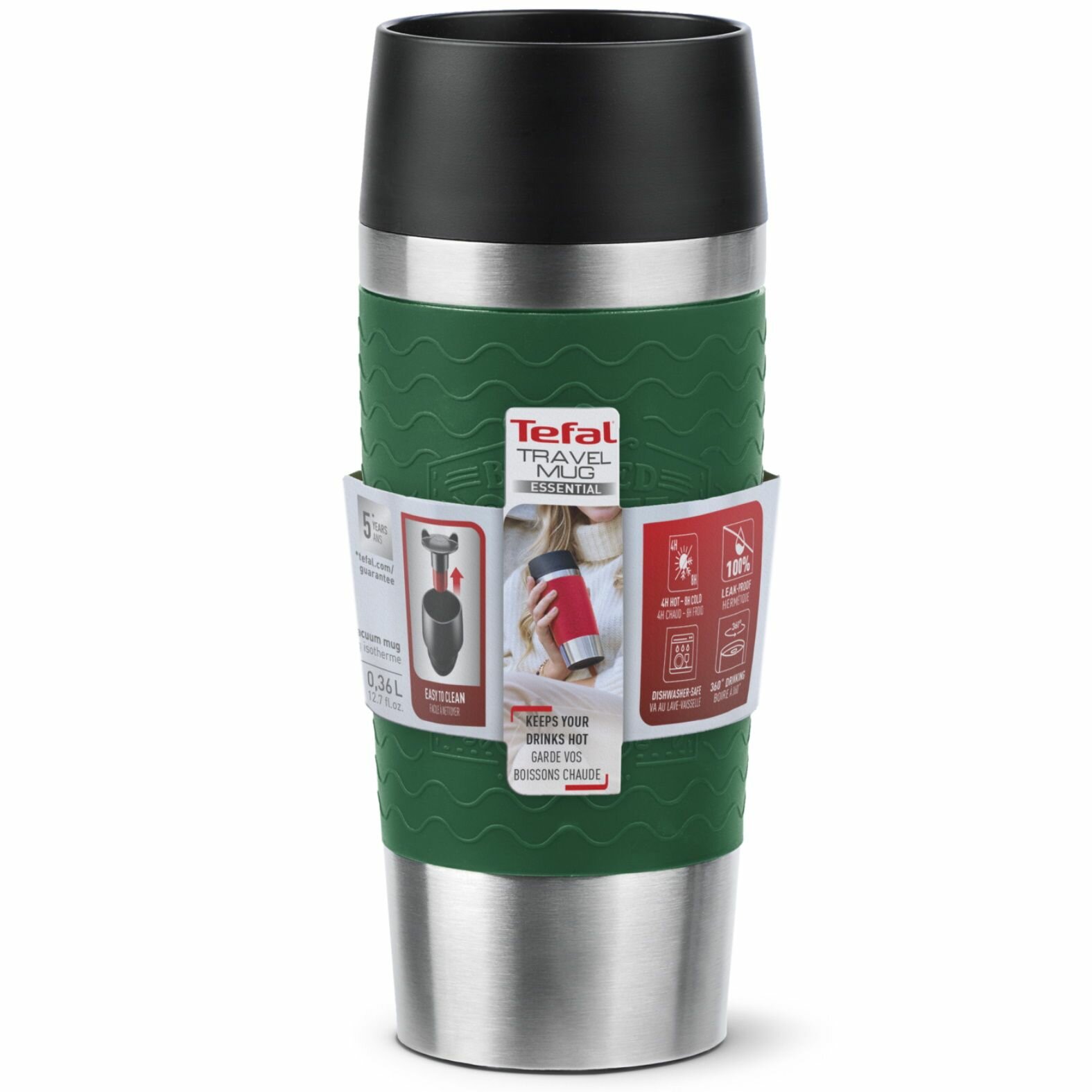 Термокружка Tefal Essential N2021810 0.36 л, с крышкой Quick Press и мягким силиконовым манжетом, зеленая интересное: