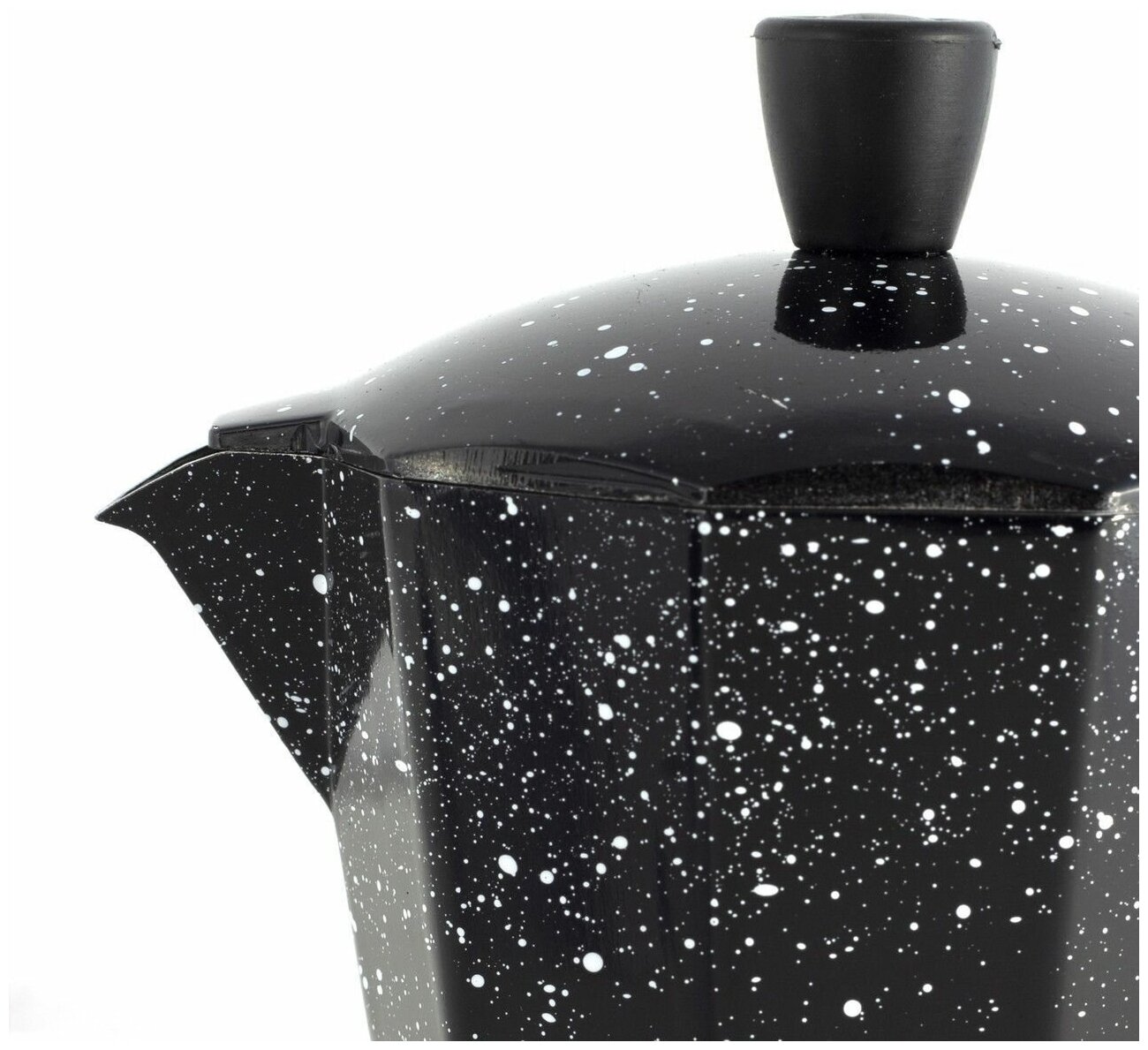Кофеварка гейзерная 450мл (9 порций) из алюминия с широким индукционным дном (черный мрамор) (арт. 101106)
