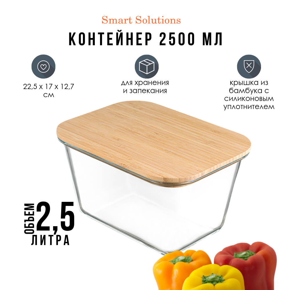 Купить Контейнер для запекания и хранения прямоугольный с крышкой из бамбука, 2,5 л, Smart Solutions, SFE-SS-CN-GLS-BM-2.5