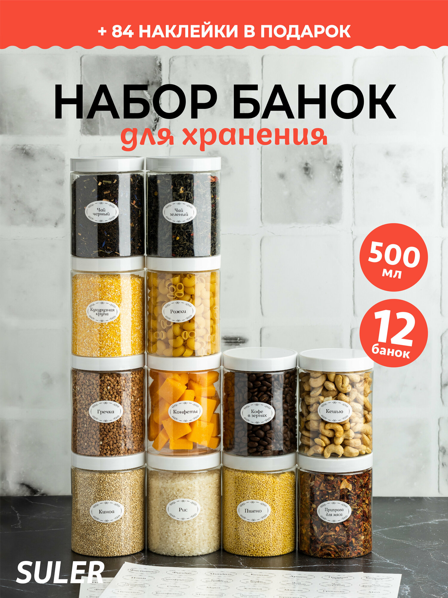 Банки для круп Suler 500 мл/12 штук