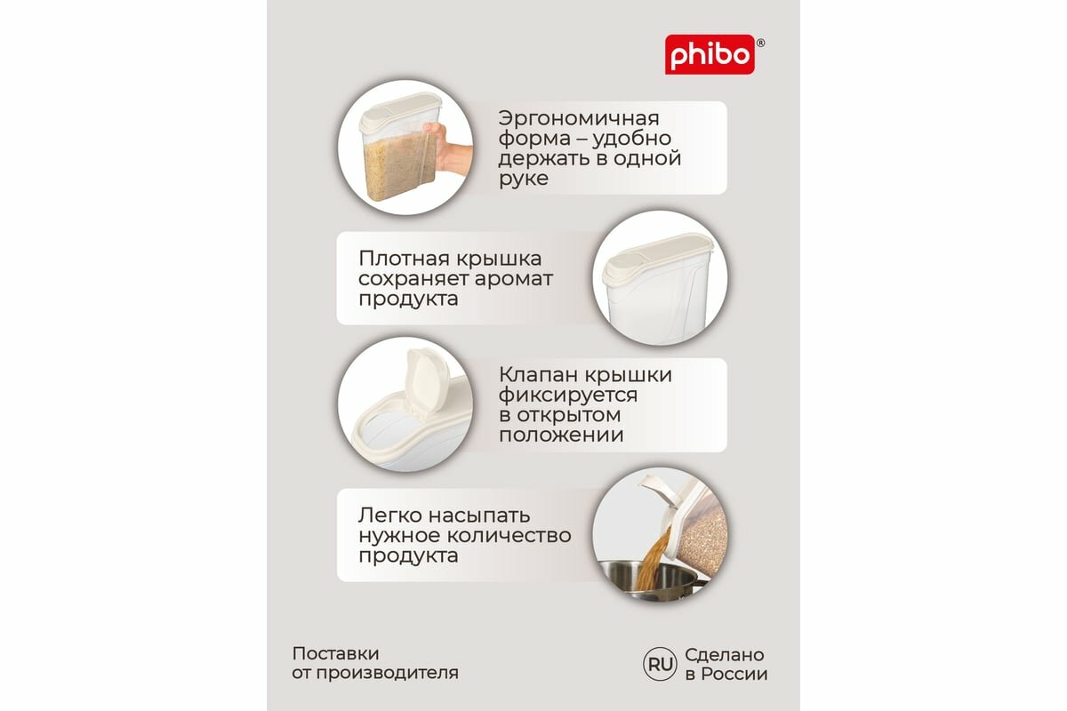 Phibo комплект ёмкостей для сыпучих продуктов 8 штук по 2,0л (бежевый флэк) 43428260722