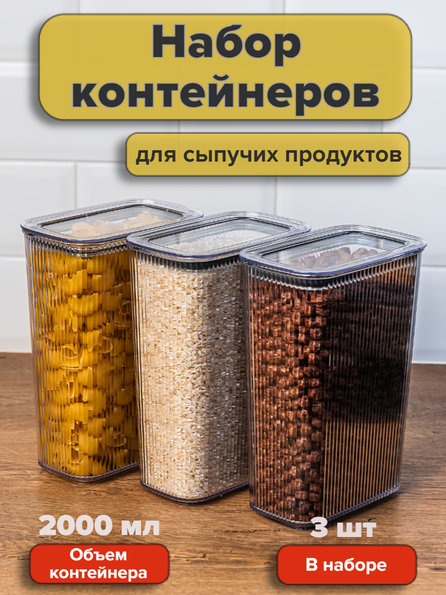 Набор контейнеров вакуумных для сыпучих продуктов Рим 2 л , 3 шт. , DD Style прозрачные интересное:
