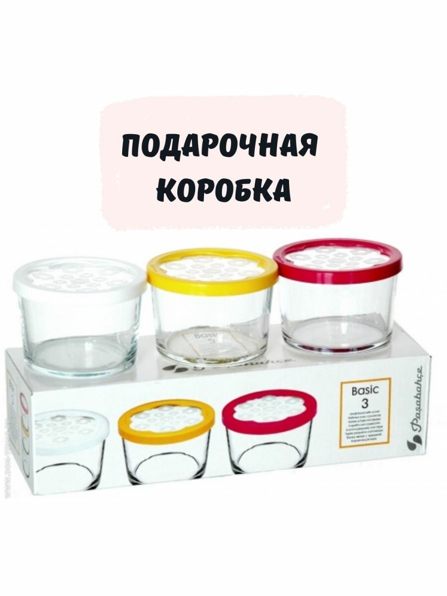 | Дополнительная информация | Стеклянные круглые банки с пластиковыми крышками 220 мл бренда Pasbahce, набор 3 шт. |