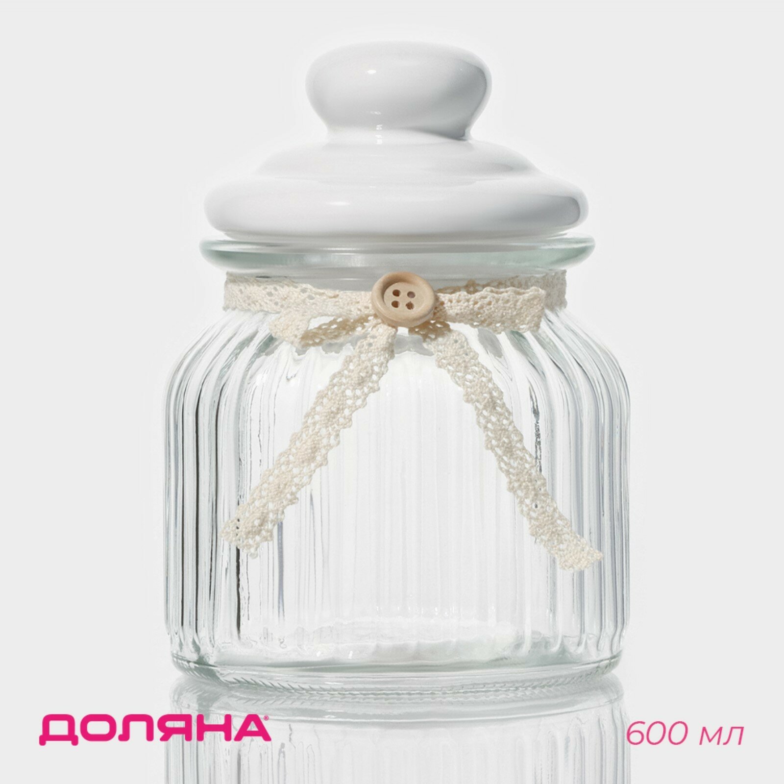 Купить Банка стеклянная для хранения сыпучих продуктов Доляна «Варенье», 600 мл, 11×15,5 см, с керамической крышкой