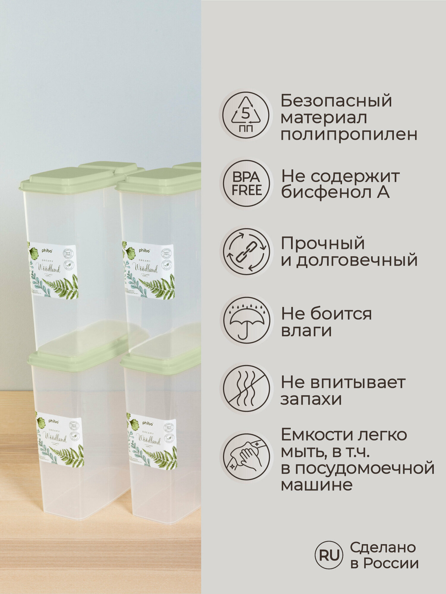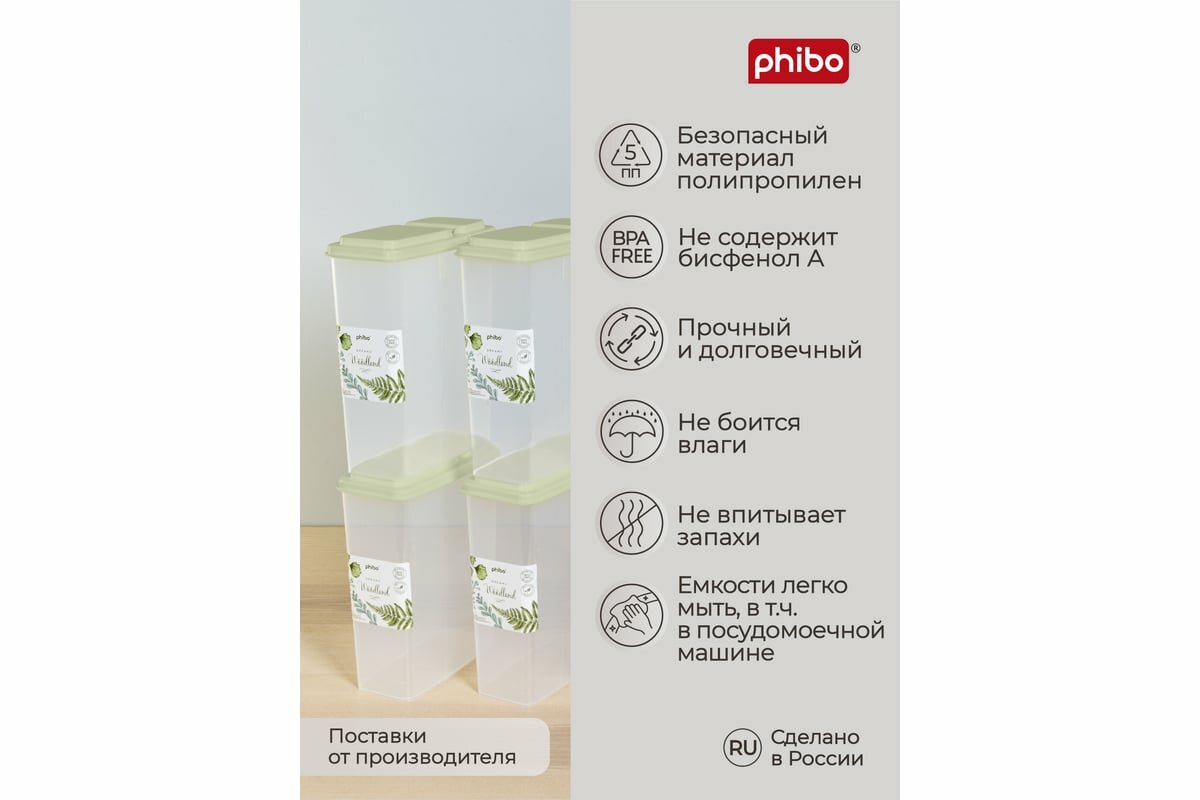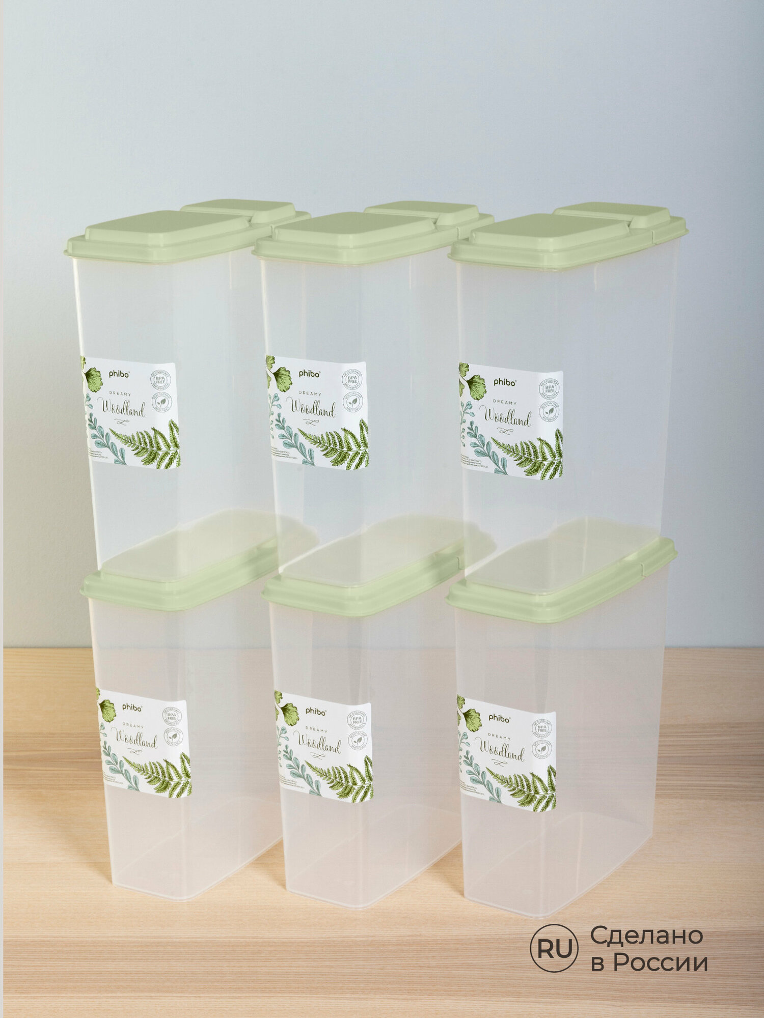 Phibo Комплект емкостей для сыпучих продуктов 2,3л, 6 шт (зеленый) 43521530922