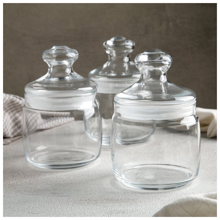 Комплект 3 штук, Банка для сыпучих продуктов стекло с крышкой CESNI 0.5 л