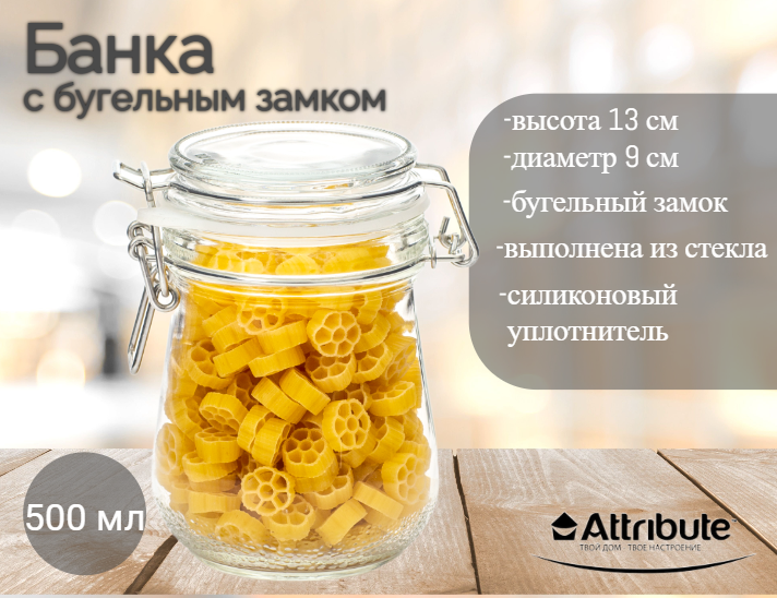 | Комплектация | Банка ATTRIBUTE 0.5л с бугельным замком JAR050 - 1 шт. |