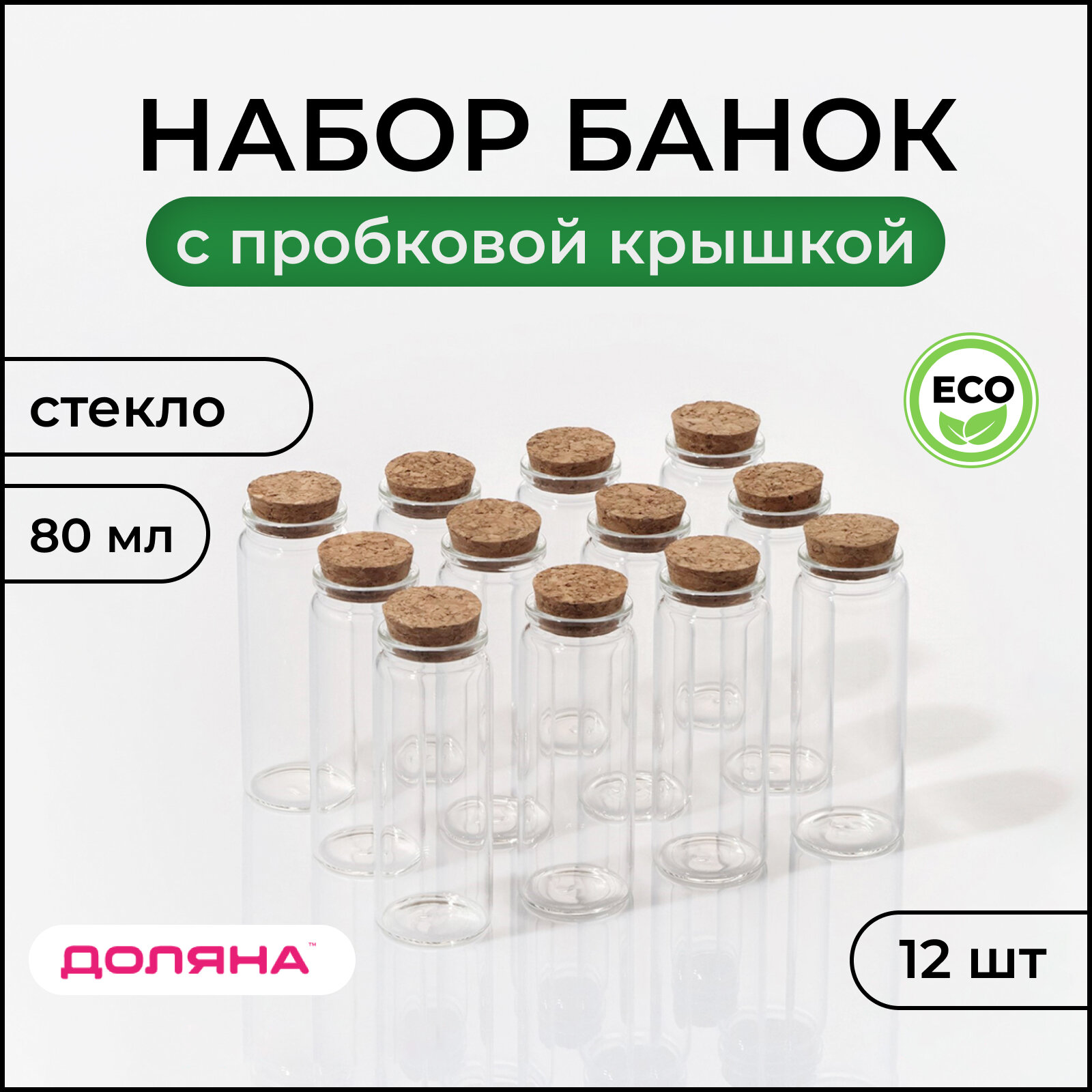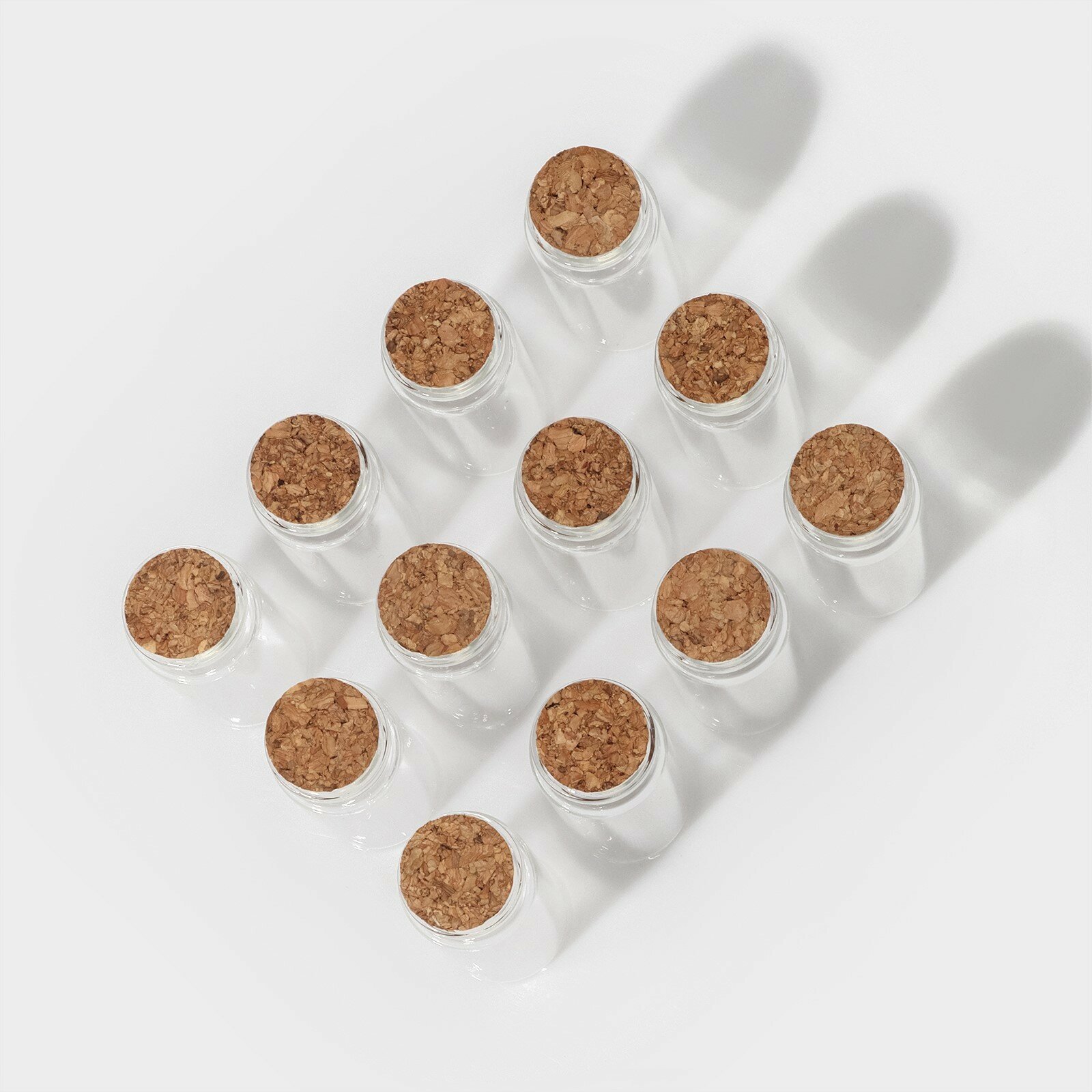 Набор стеклянных баночек для сыпучих продуктов с пробковой крышкой Доляна «Парфе. Колба», 80 мл, 3,7×10 см, 12 шт