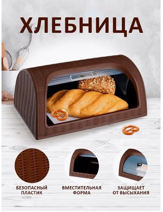 Хлебница пластиковая "Elegance" 43Х27Х19 см. Эльфпласт коричневый