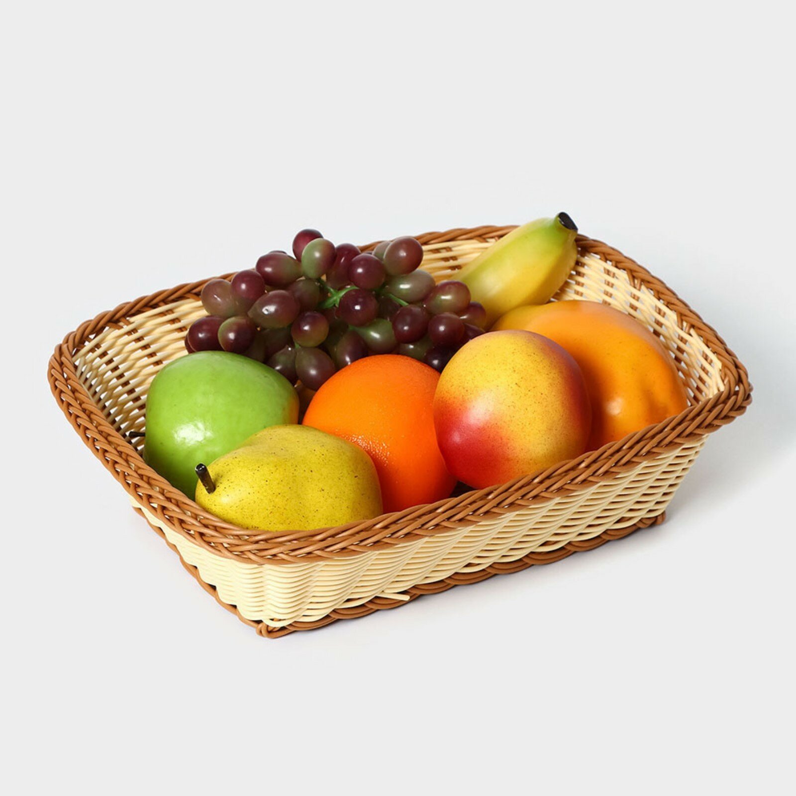 Корзинка фруктов и хлеба Доляна «Молочный шоколад», 25×17 см, пластик, плетёная, молочная