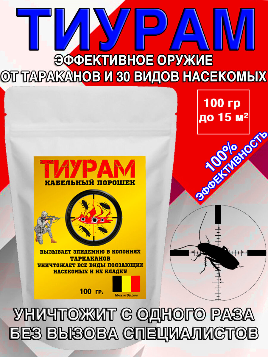 Средство от тараканов, Тиурам 100г, Самое мощное средство от тараканов в квартире, от муравьев, отрава для мышей, кабельный порошок.