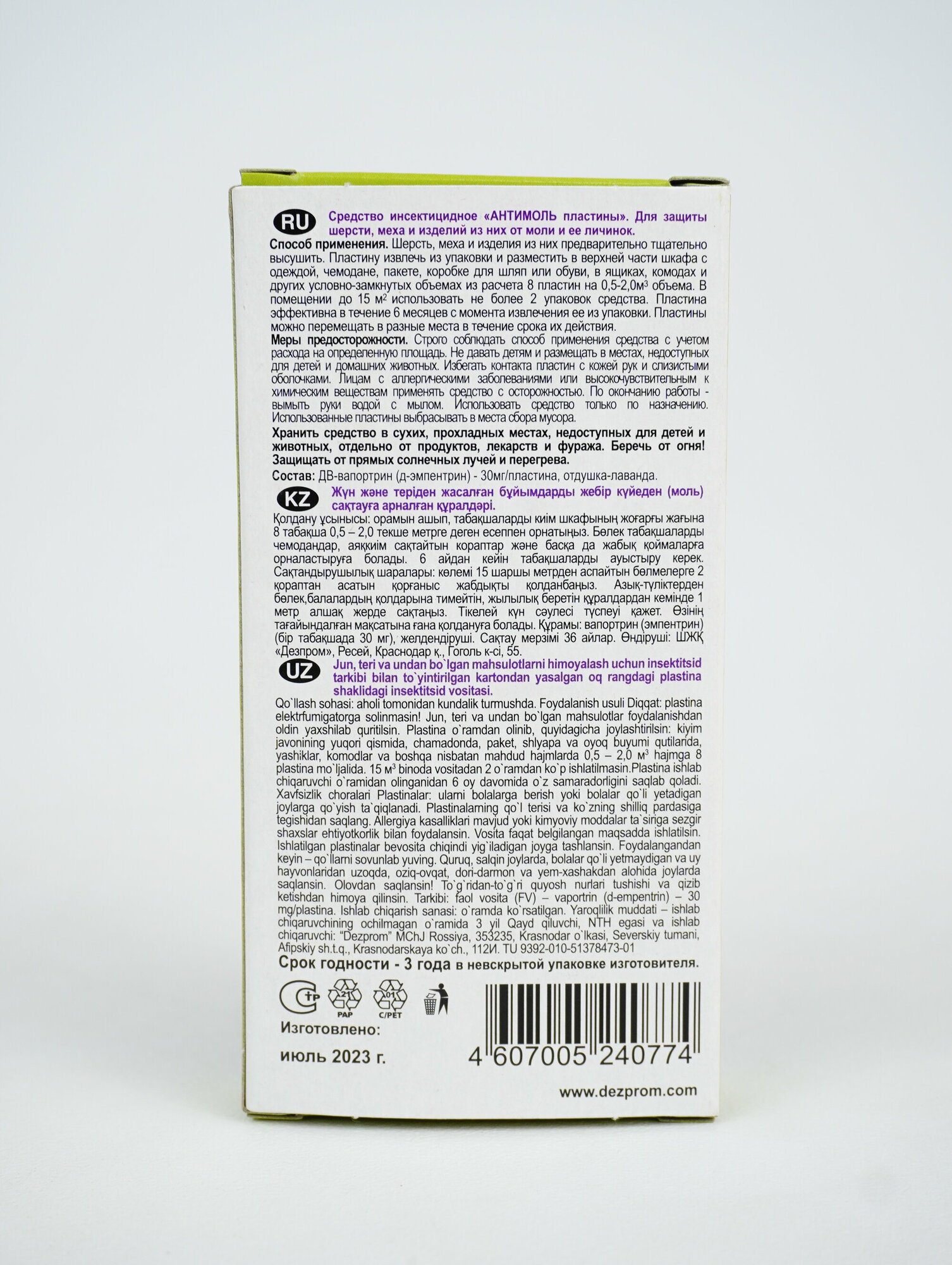 Средство от моли в шкаф, ящик для шубы, шерстянных изделий и др. "Антимоль". Пластины лаванда против моли 8 шт интересное: