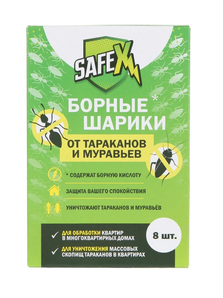 Борные шарики от тараканов и муравьев "SAFEX", 8 шт