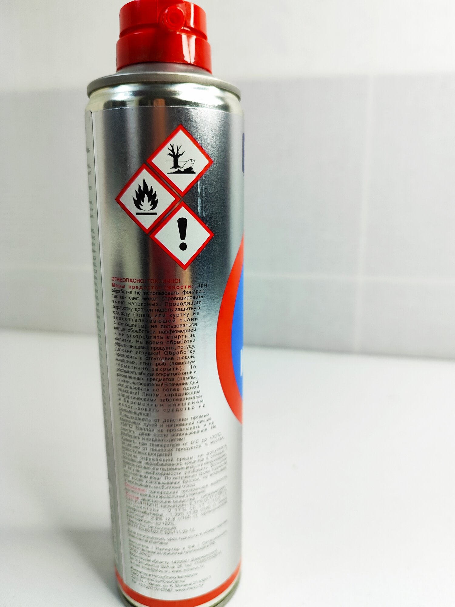 | Состав | органический растворитель, окись углерода (2,8%), пиперонилбутокрид (1,35%), циперметрин (0,4%), тетраметрин (0,17%), перметрин (0,17%) |