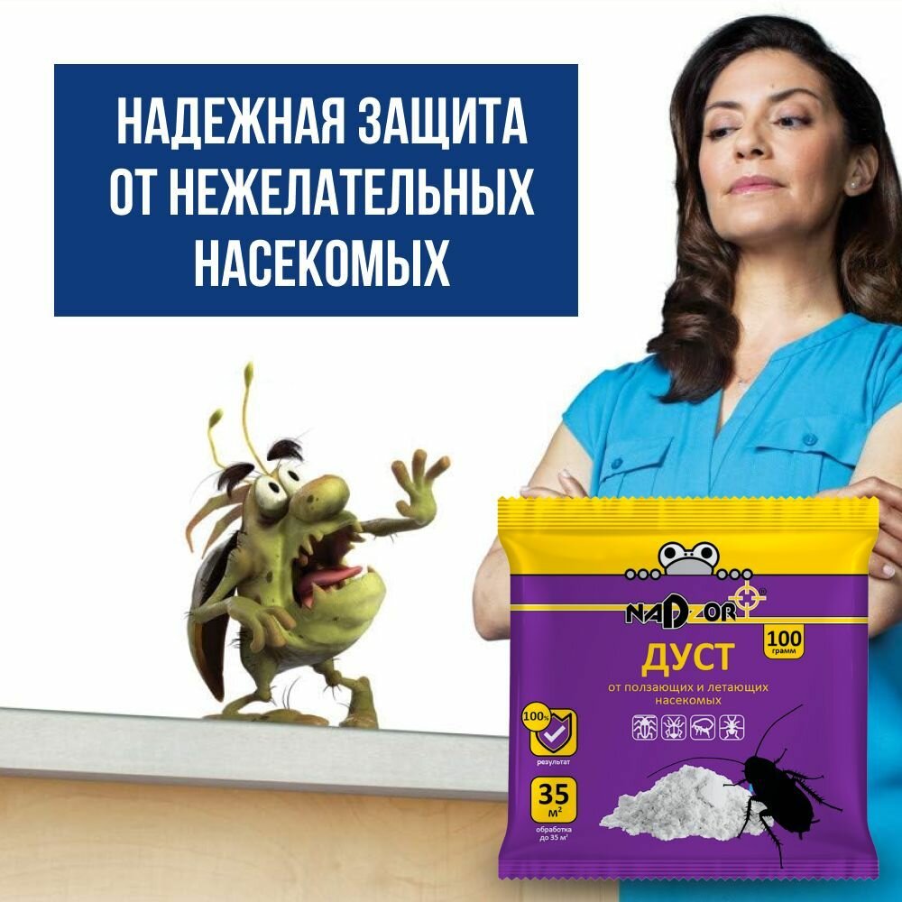 Дуст от тараканов, муравьев, блох, клопов, мух 100г. * 1 упаковка NADZOR интересное: