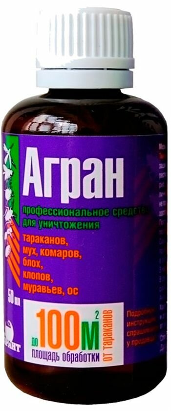 Купить Агран Профессиональное средство для уничтожения тараканов, мух, комаров, блох, клопов, муравьев, ос 50 мл