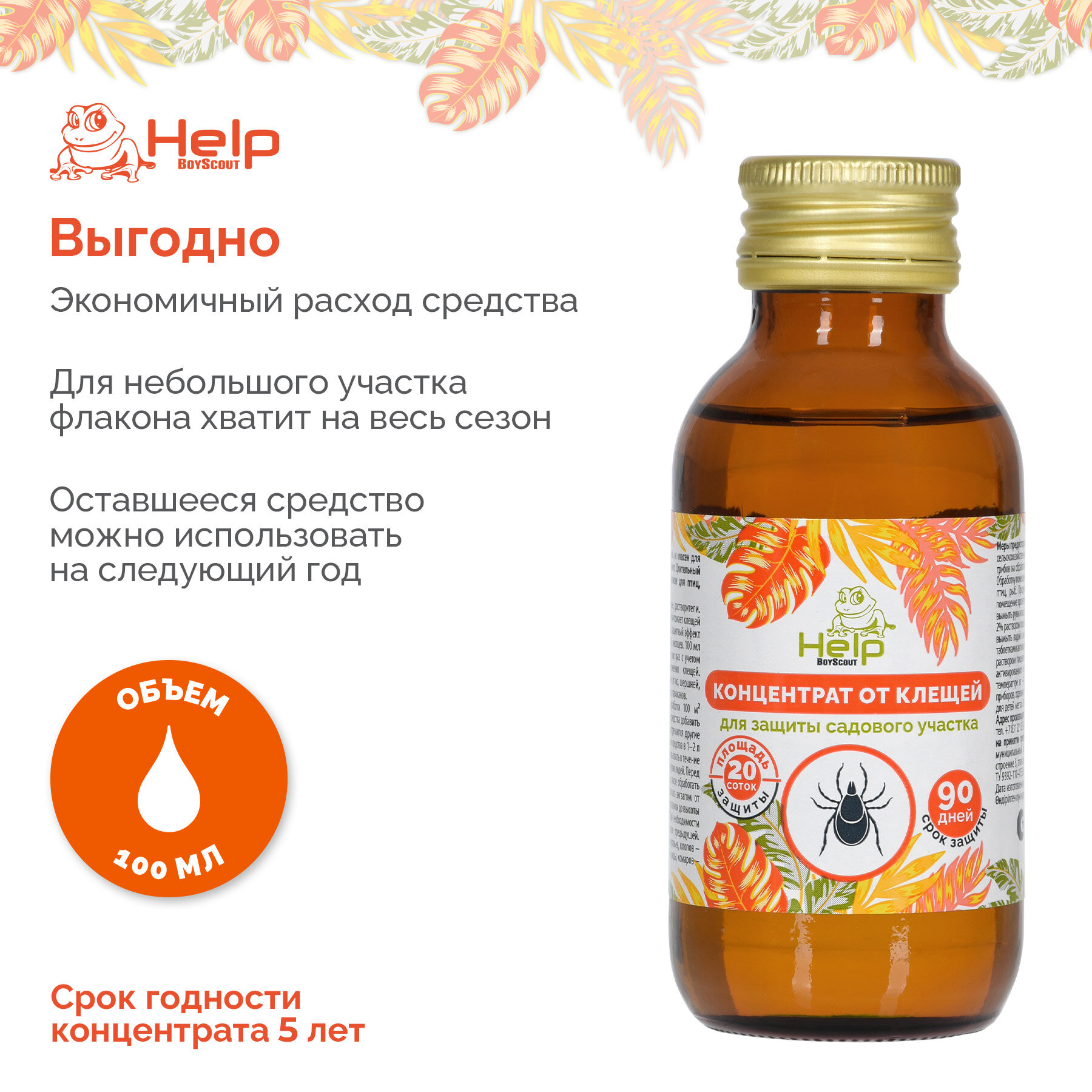 Инсектицид от клещей, концентрат, 100 мл, для защиты дачного участка, до 20 соток, Help