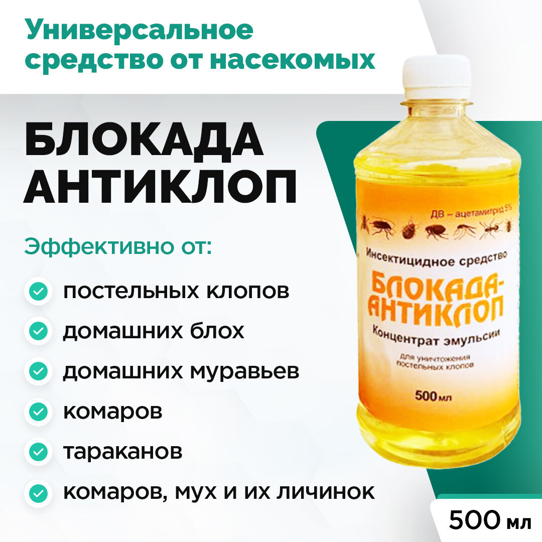Блокада Антиклоп ВЭ 5% 500 мл средство от Постельных клопов, Тараканов, Муравьев, Блох
