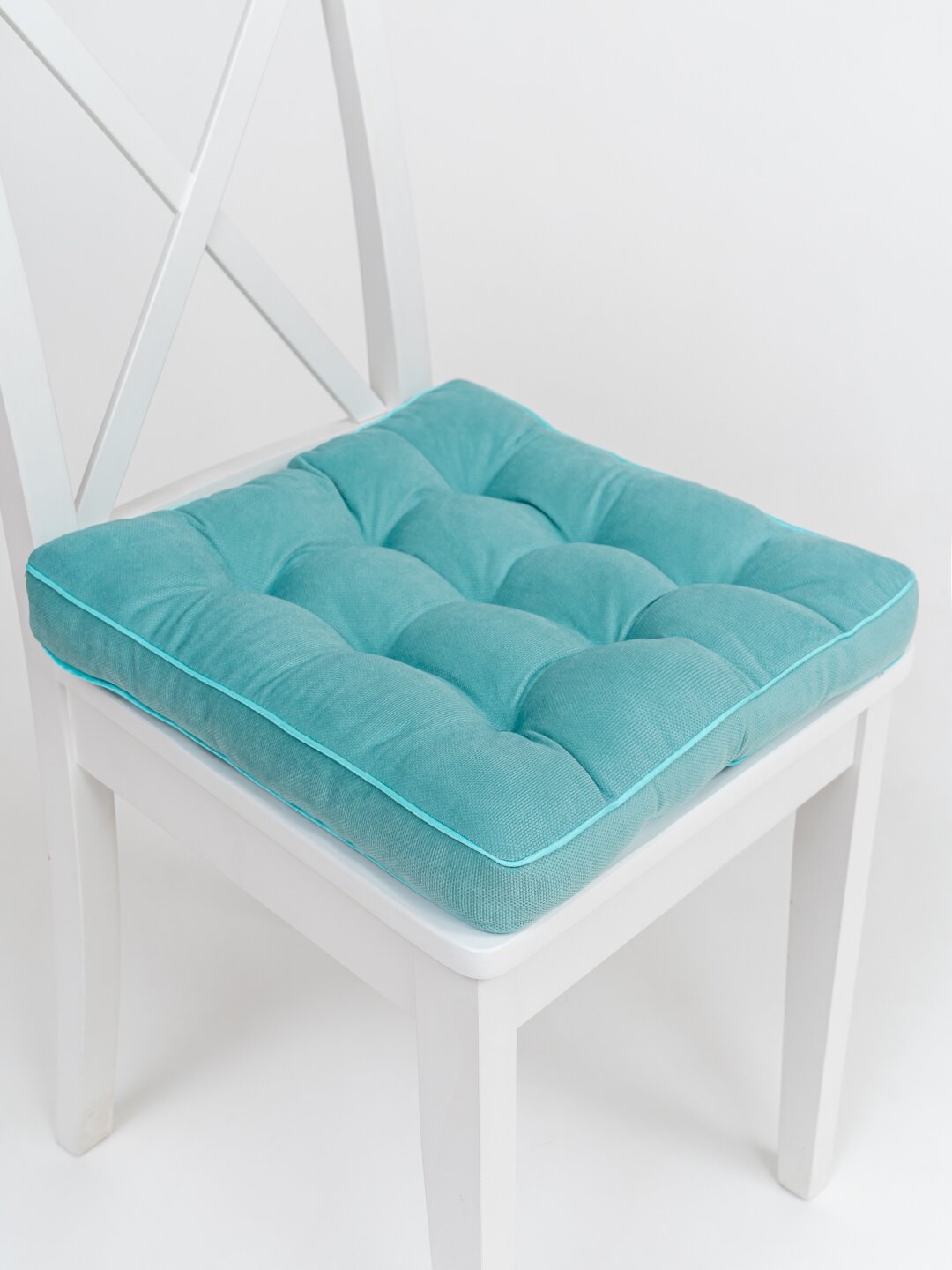 Подушка на стул Bio-Line /Декоративная подушка/Сидушка высоким бортом/Табуретник/Квадратная/40х40 см/бирюзовый