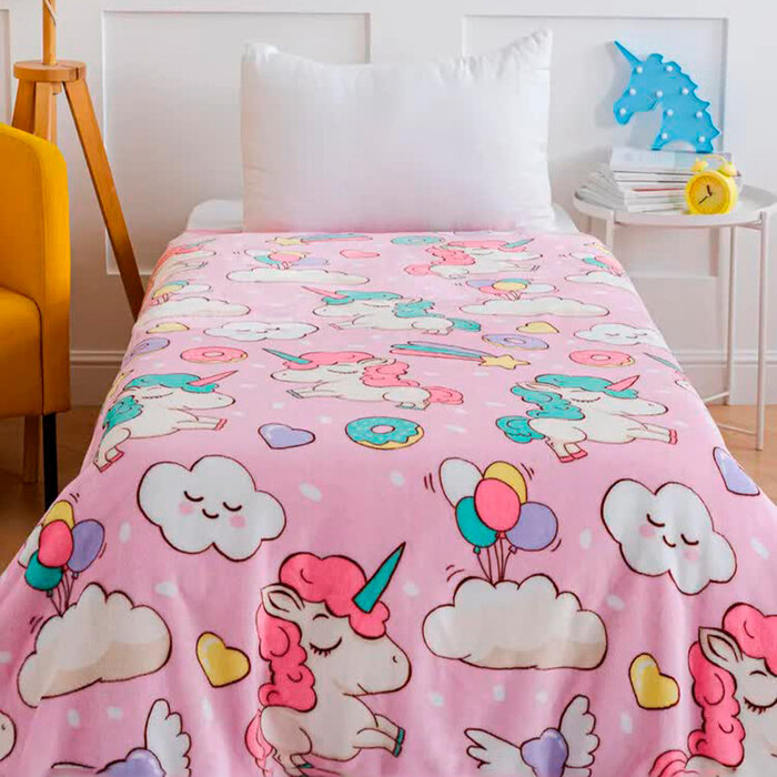 Плед Павлинка Единороги 150х200см, розовый, аэрософт, 190г/м, пэ100%
