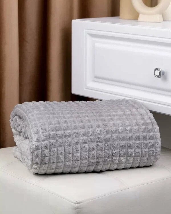 СохранитьПушистый Плед покрывало Велсофт кубик Евро 200х220, накидка на кровать, Светло-серый интересное: