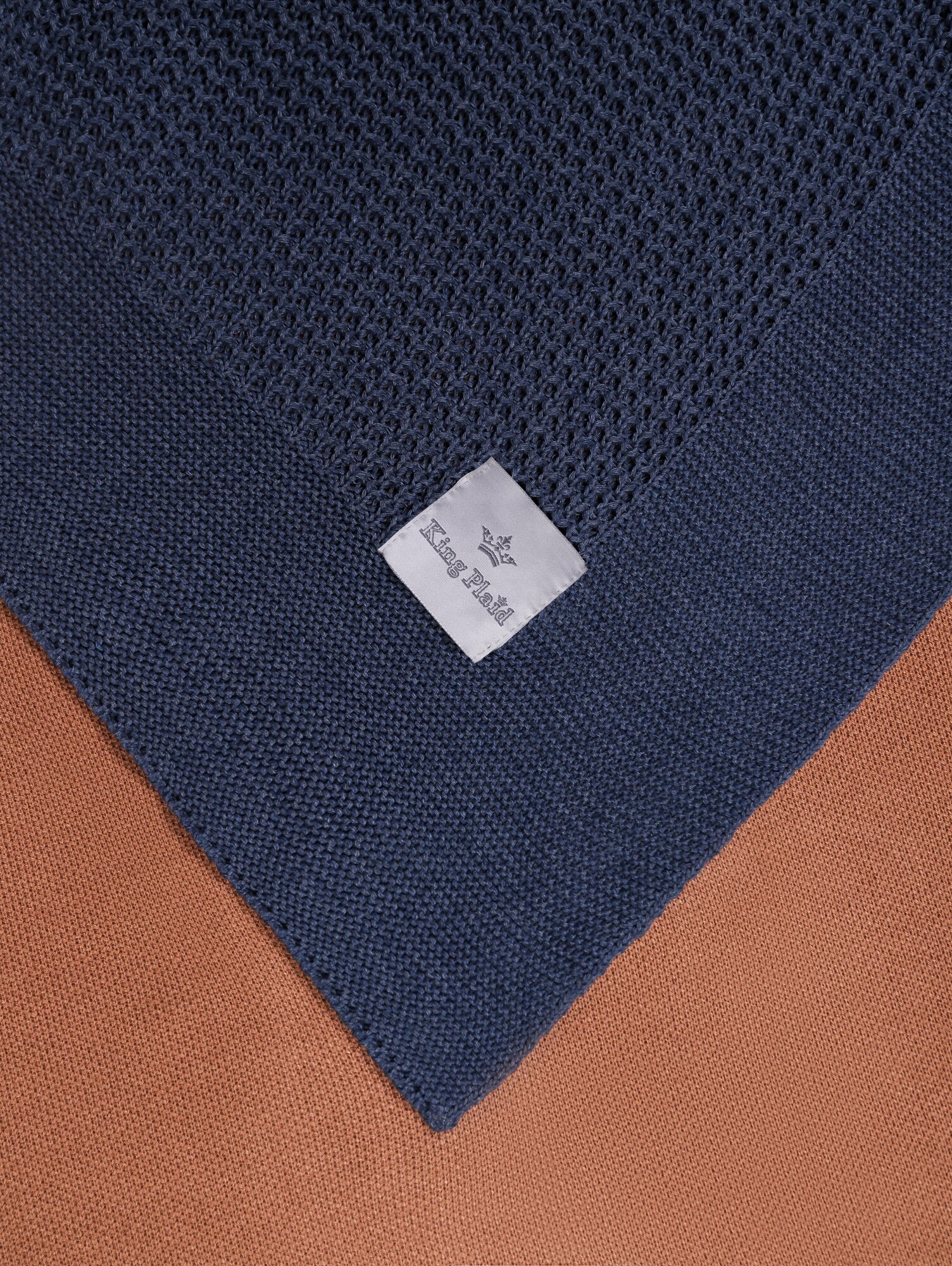 Плед 240x260, вязаный, KING PLAID, джинс, хлопок, покрывало на кровать, на диван, на кресло, в подарочной сумке