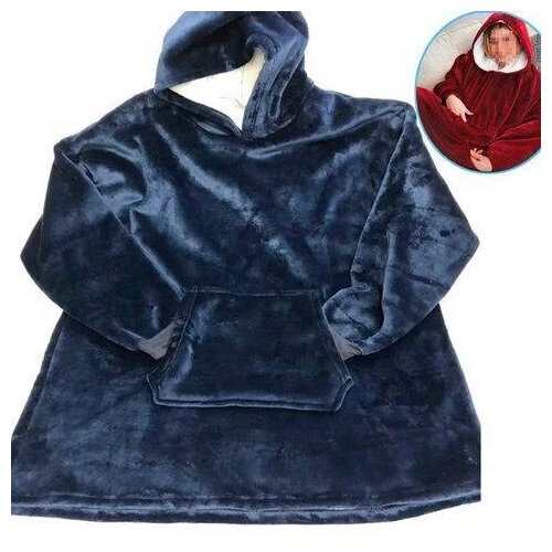 Плед-толстовка Huggle Hoodie с капюшоном, синий, 86х110 см. / Плед для дома / Большая толстовка / Плед с рукавами