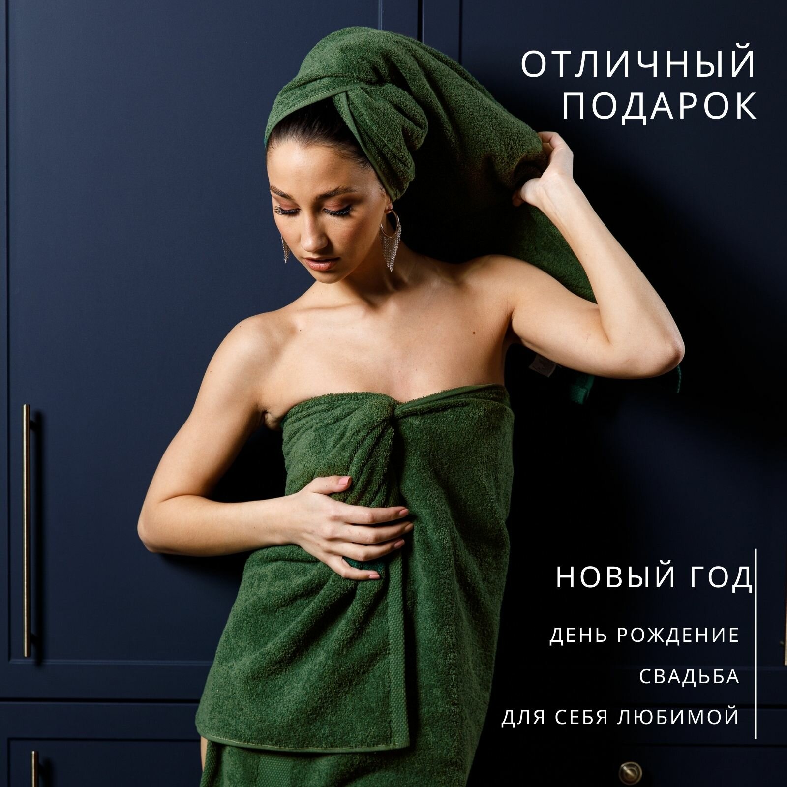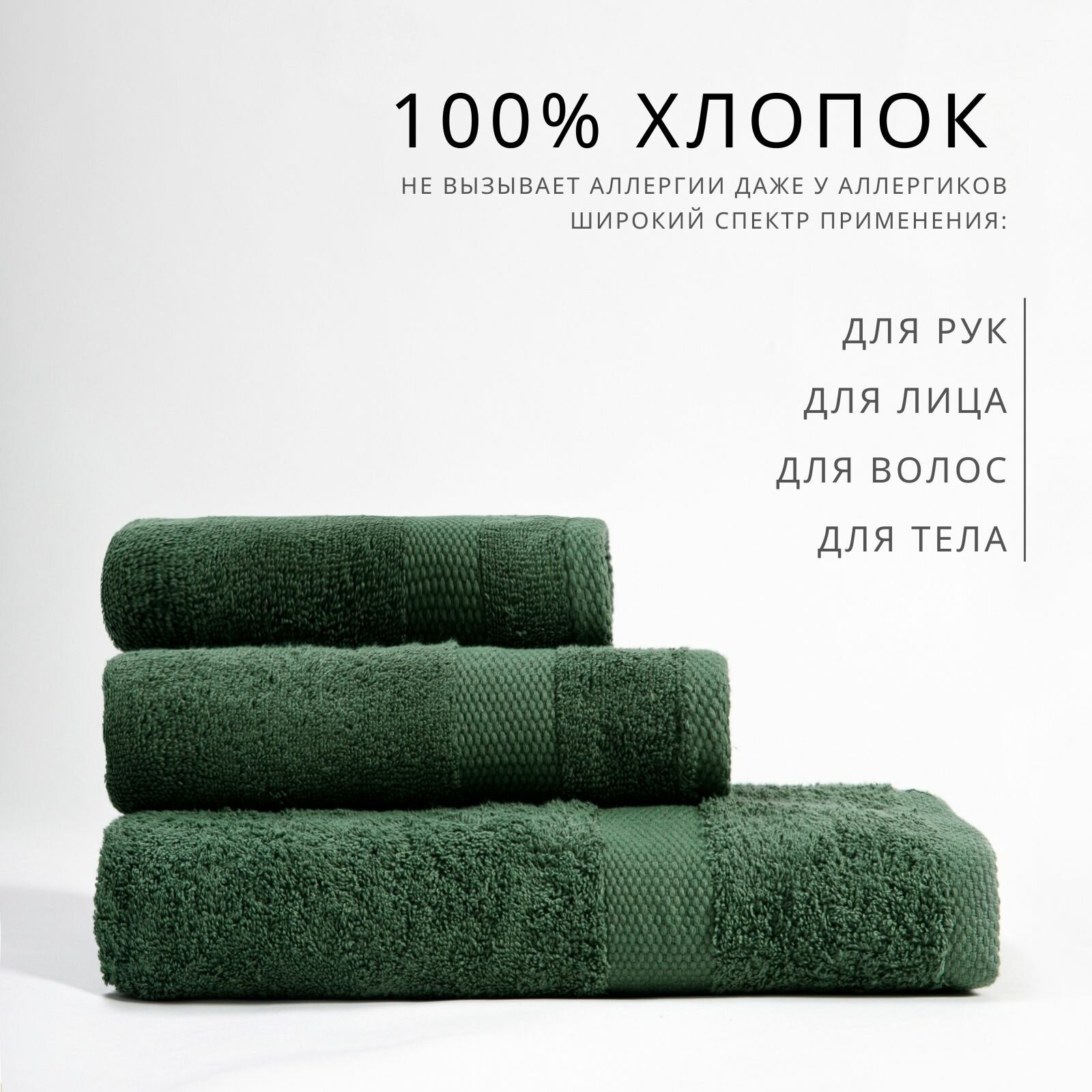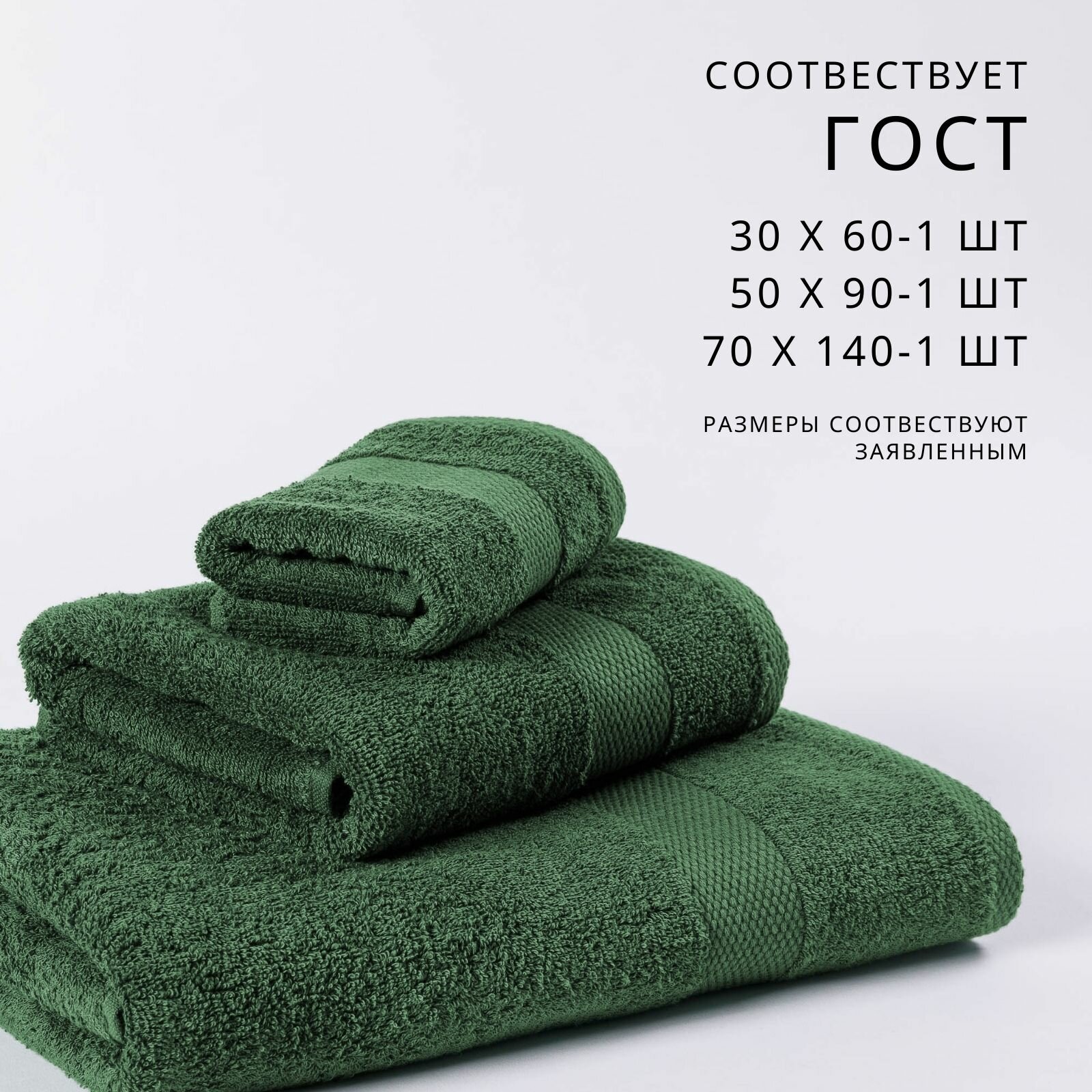 Полотенца банные махровые набор 3 шт оливковый