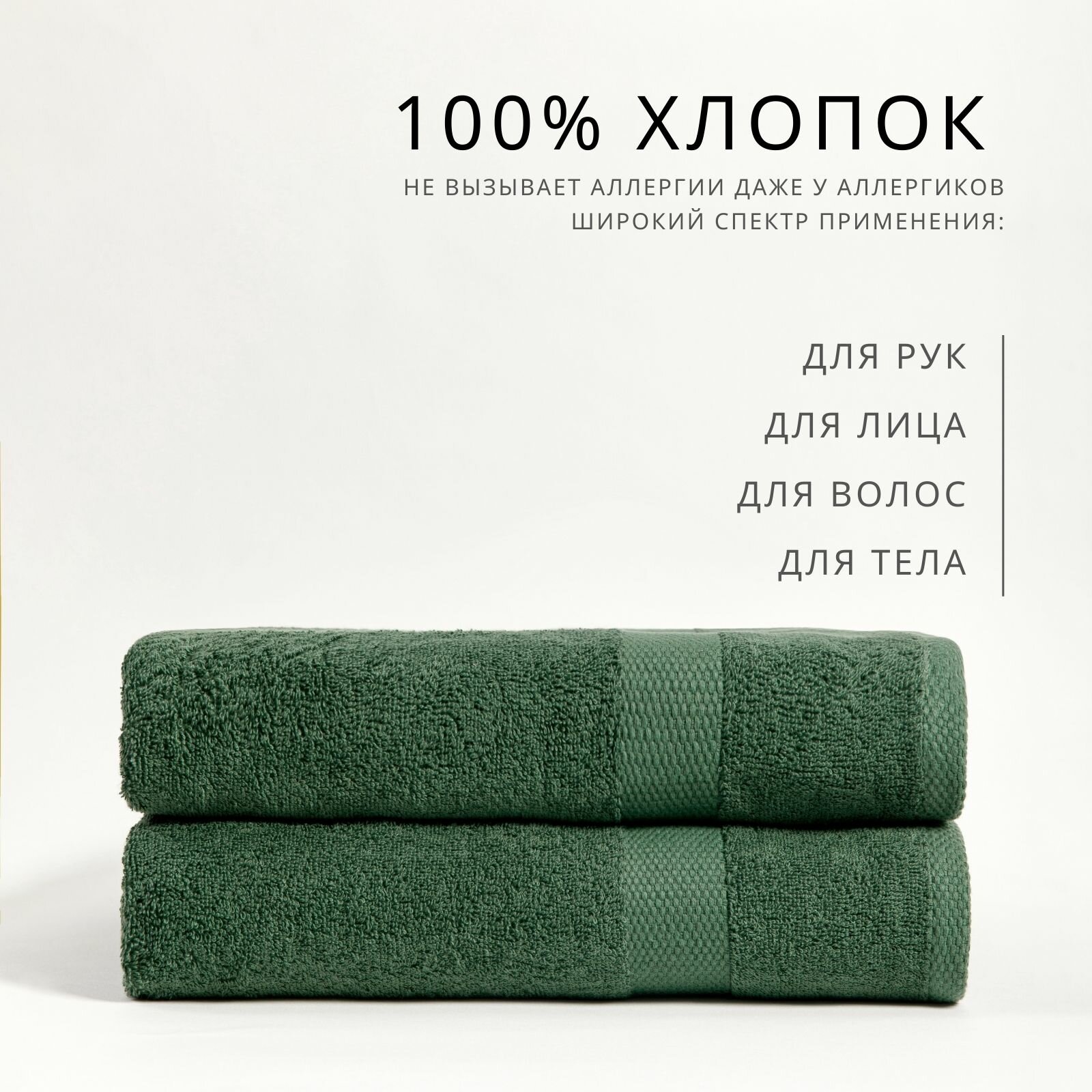 Полотенце банное махровое набор 2 шт 70х140 см зеленый