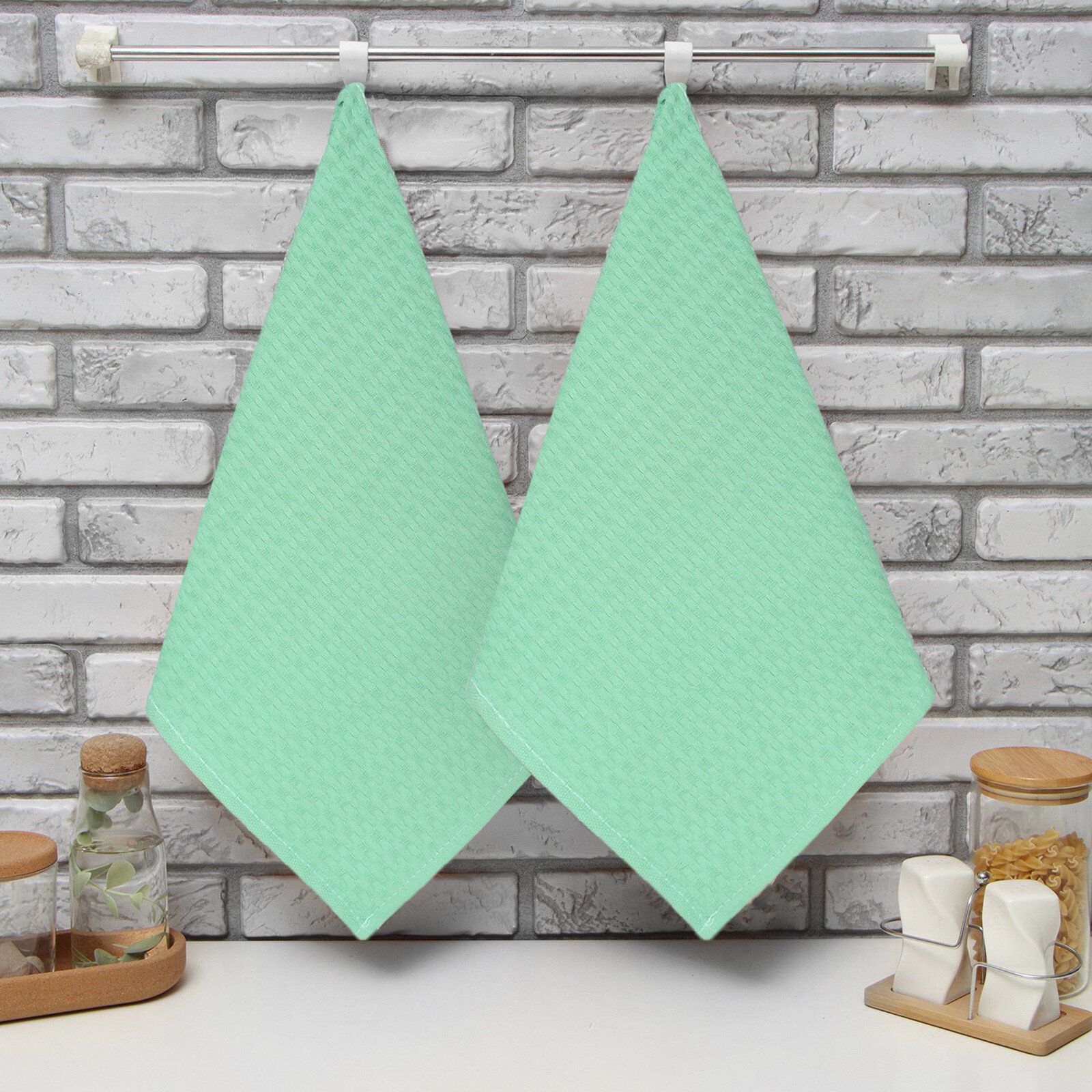 Купить Набор кухонных полотенец цвет салатовый, 35х60см-2шт, 100% хл, вафля, 220 гр/м2