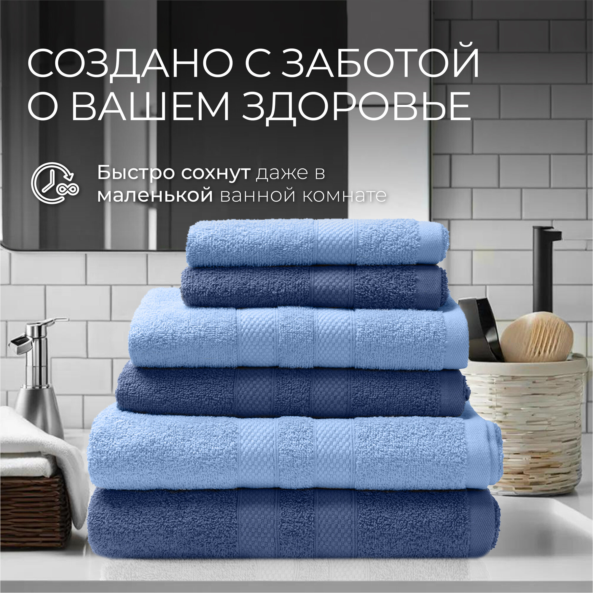 | Дополнительная информация | Махра из пряжи Ринг 16/1, 100% хлопок, с бордюром, 380 г/кв.м. набор из 6 шт.: 30х60-2, 50х80-2,70х130-2 |