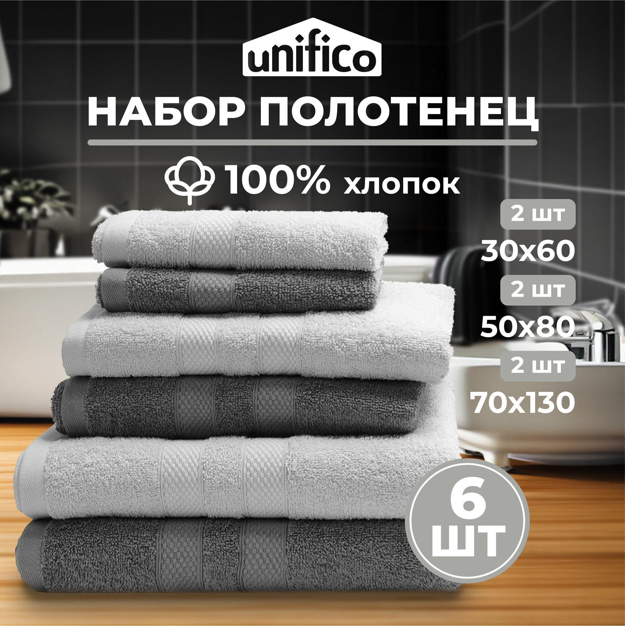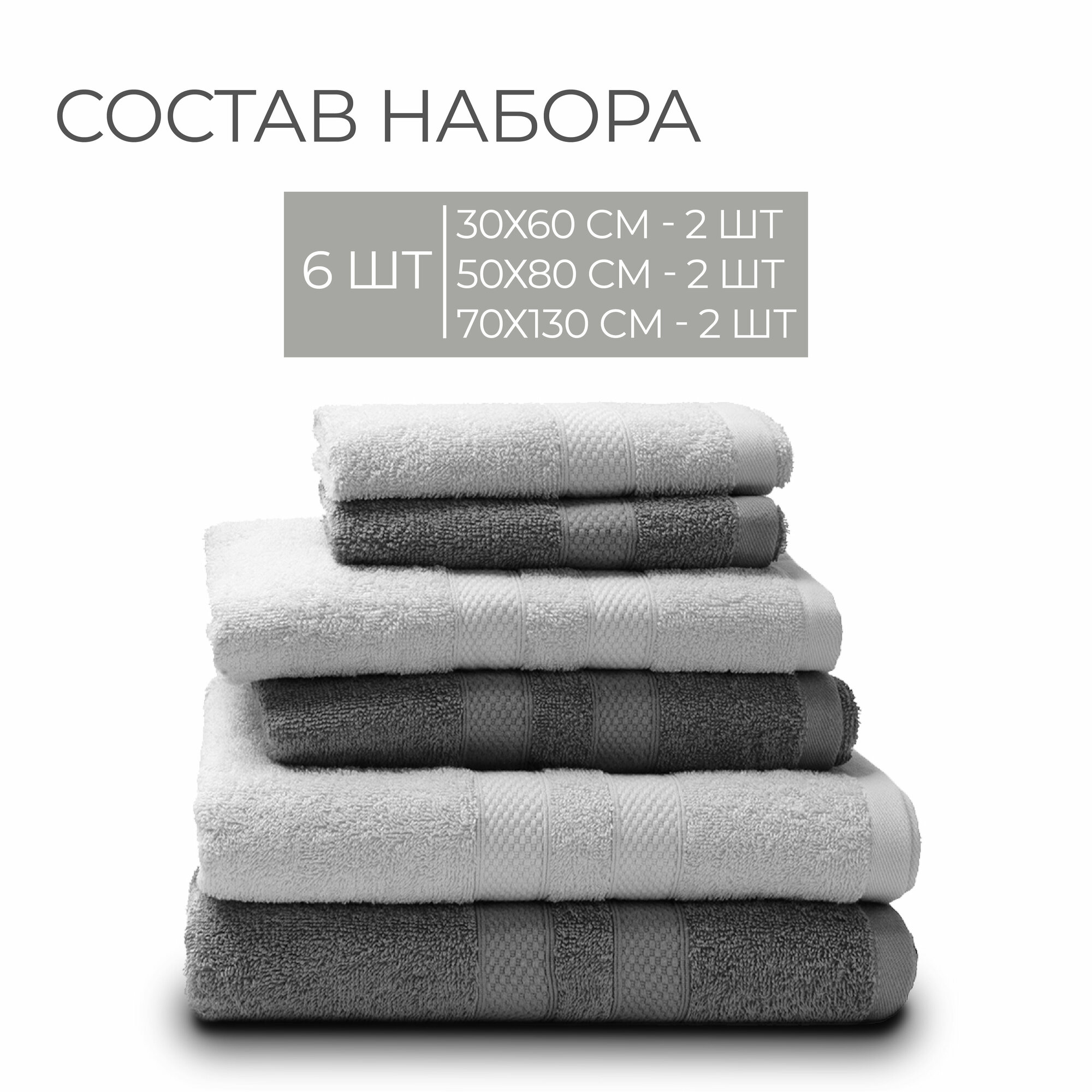Полотенца махровые Unifico Nature серый лунный свет, набор из 6 шт: 30х60-2, 50х80-2,70х130-2