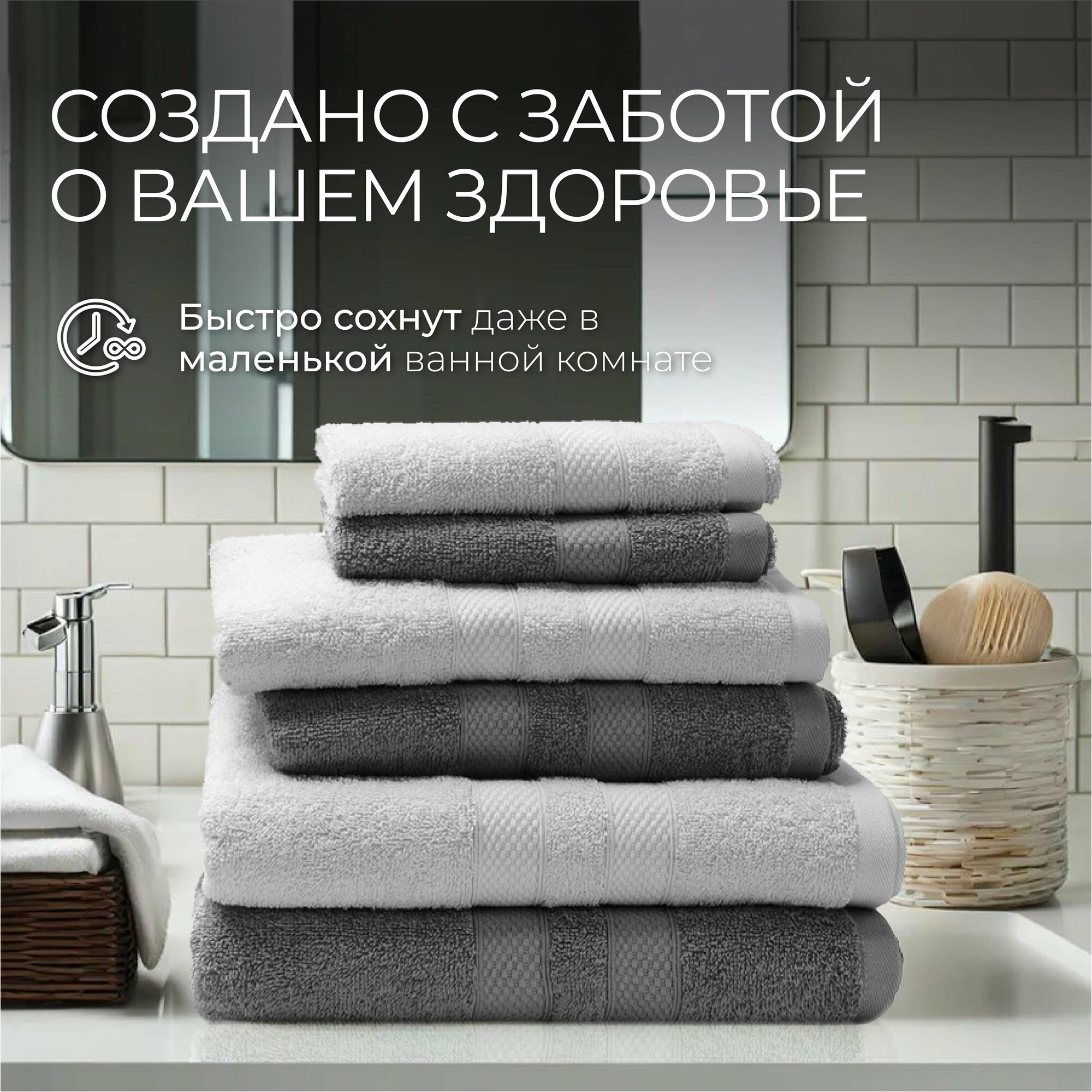 СохранитьПолотенца махровые Unifico Nature серый агат, набор из 6 шт.: 30х60-2, 50х80-2,70х130-2 интересное: