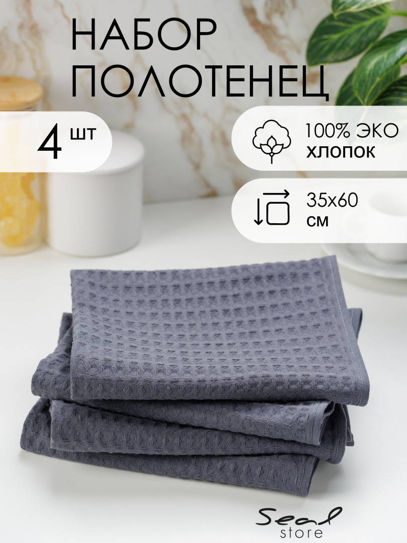 Купить Набор из 4-х вафельных кухонных полотенец SealStore Эконом, (35*60), серый