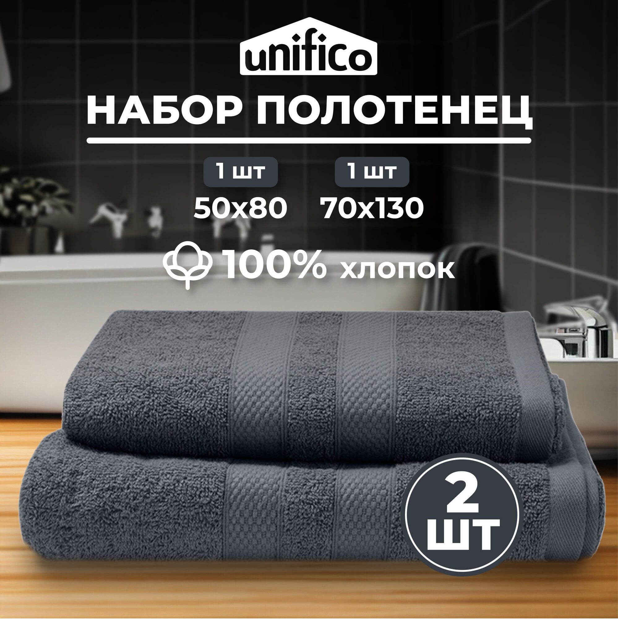 СохранитьПолотенца махровые Unifico Nature антрацит, набор из 2 шт.: 50х80-1,70х130-1 интересное: