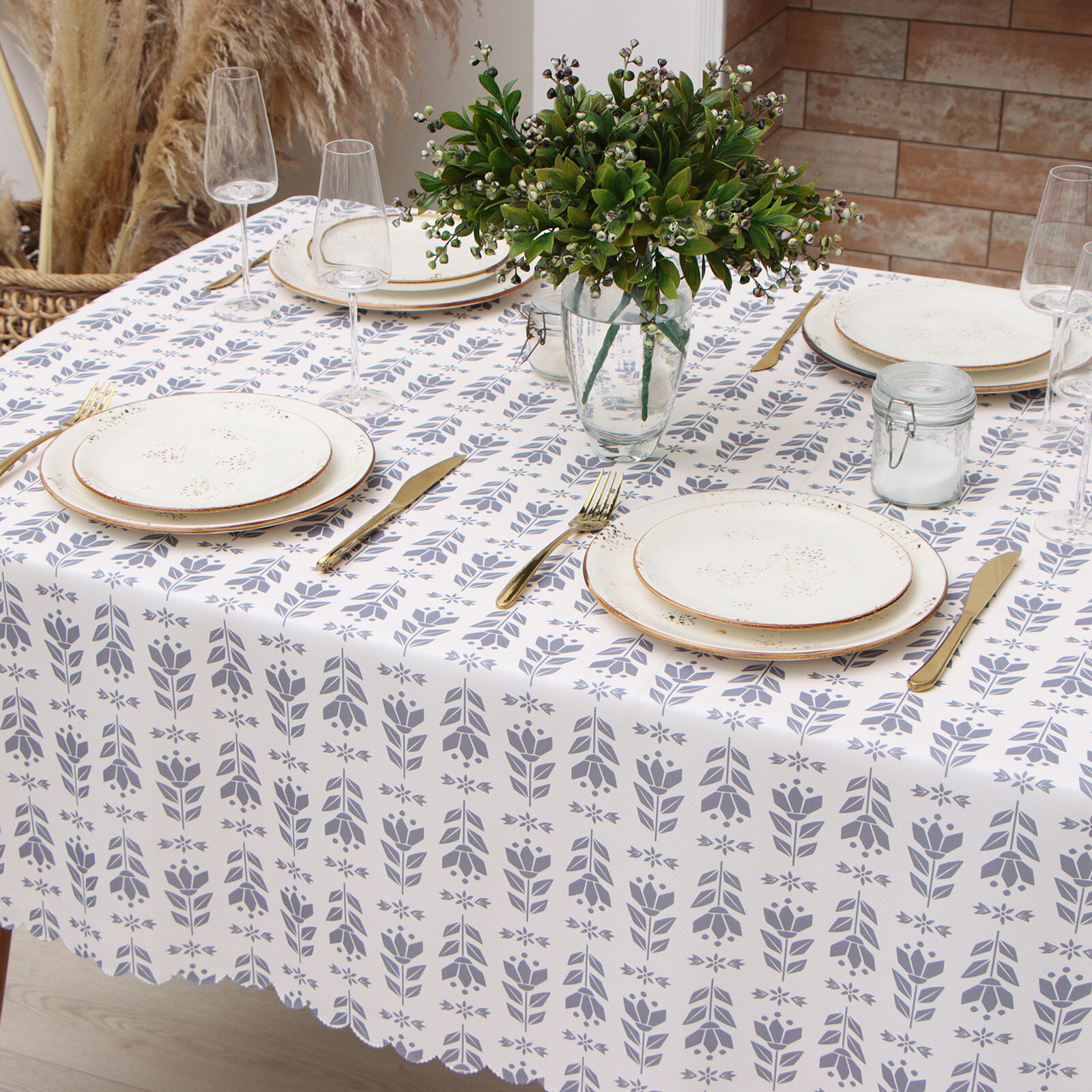 Скатерть Доляна "Магнолия" 146х110см, рогожка 158 г/м2, 50% хл, 50% пэ Доляна 9828475 .