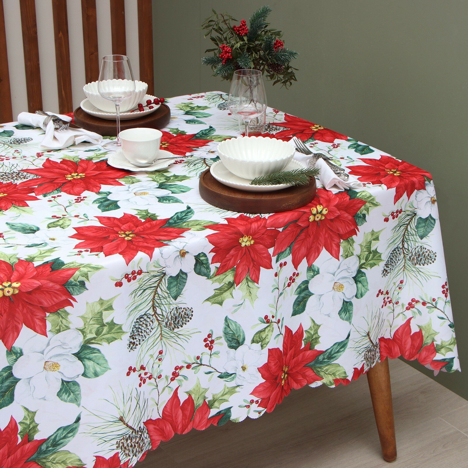 Купить Скатерть «Доляна» "Рождественские цветы", 145*300 см, 100% п/э