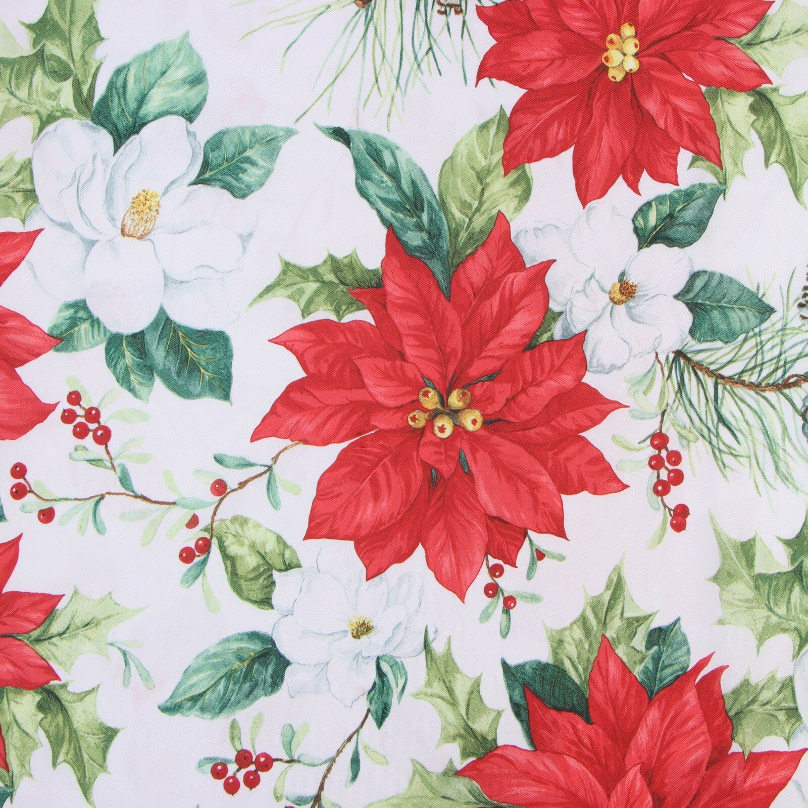 Скатерть новогодняя "Рождественские цветы" 145*220 см, 100% п/э